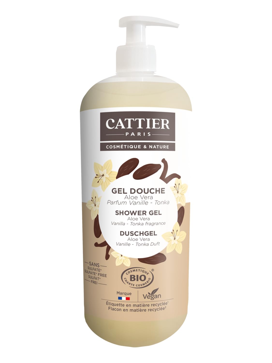 This soap and sulphate-free (sulphate-free surfactants) shower gel gently cleanses the skin and helps maintain the skin's natural balance. Aloe vera, with its versatile properties, helps protect the skin and makes it soft and supple – for a real moment of well-being. The exotic and subtle scent combines notes of vanilla and tonka. In a practical 1 liter pump dispenser for the whole family, to reduce packaging waste. GENERAL INFORMATION Shower gel. INGREDIENTS Aqua, decyl glucoside, glycerin, sodium cocoamphoacetate, cocamidopropyl betaine, xanthan gum, perfume, citric acid, sodium benzoate, carrageenan, aloe barbadensis leaf juice powder, geraniol, linalool, limonene. INSTRUCTIONS FOR USE Apply to the body daily, foam and then rinse thoroughly. In case of contact with eyes, rinse with plenty of clean water. SAFETY WARNING Cosmetic. See moreThe bottle is made from 100 recycled plastic. The label is made from 100 recycled plastic. Glycerin. Vanilla-Tonka scent. Aloe vera.CATTIER PARIS Douchegel vanille - Tonka - Aloë Vera - Zeep- en sulfaatvrije (sulfaatvrije oppervlakteactieve stoffen) douchegel reinigt de huid zacht en helpt het natuurlijke evenwicht van de huid te Deze zeep- en sulfaatvrije (sulfaatvrije oppervlakteactieve stoffen) douchegel reinigt de huid zacht en helpt het natuurlijke evenwicht van de huid te behouden. Aloë vera, met zijn veelzijdige eigenschappen, helpt de huid te beschermen en maakt hem zacht en soepel – voor een echt moment van welzijn. De exotische en subtiele geur combineert noten van vanille en tonka. In praktische pompdispenser van 1 liter voor het hele gezin, ter vermindering van verpakkingsafval. ALGEMENE INFORMATIE Douchegel. INGREDIËNTEN Aqua, decylglucoside, glycerine, natriumcocoamfoacetaat, cocamidopropylbetaïne, xanthaangom, parfum, citrisch zuur, natriumbenzoaat, carrageenan, aloë barbadensis bladsappoeder, geraniol, linalool, limoneen. GEBRUIKSAANWIJZING Dagelijks op het lichaam aanbrengen, opschuimen en vervolgens grondig afspoelen. Bij contact met de ogen met veel schoon water spoelen. VEILIGHEIDSWAARSCHUWING Cosmetisch middel. Meer bekijkenDe fles is gemaakt van 100 gerecycled plastic. Het etiket is gemaakt van 100 gerecycled plastic. Glycerine. Vanille-Tonka-geur. Aloë vera.