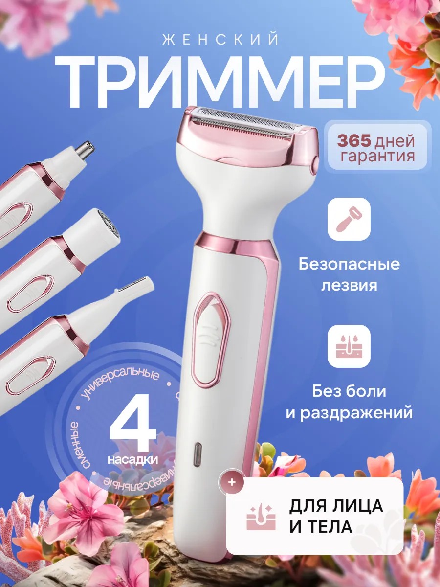 Женский универсальный триммер 4 в 1 — аппарат для эффективного удаления волос в домашних условиях. Он сделает депиляцию дома комфортной и безболезненной. Электро прибор представляет собой бритву, которая легко уберет лишнюю растительность на теле и лице, в том числе в чувствительных местах такие как подмышки.