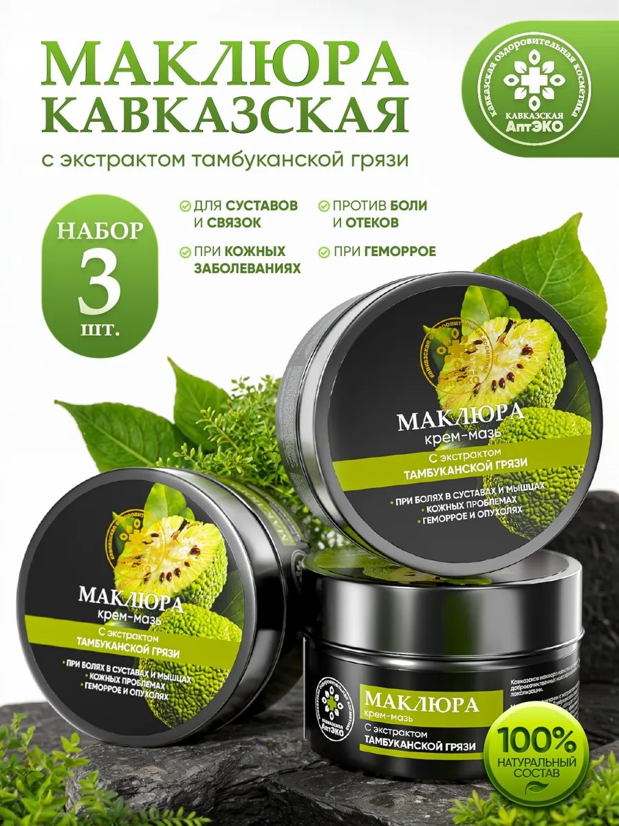 Кавказская Аптека Набор Мазь Кавказская Маклюра с тамбуканской грязью 3 шт