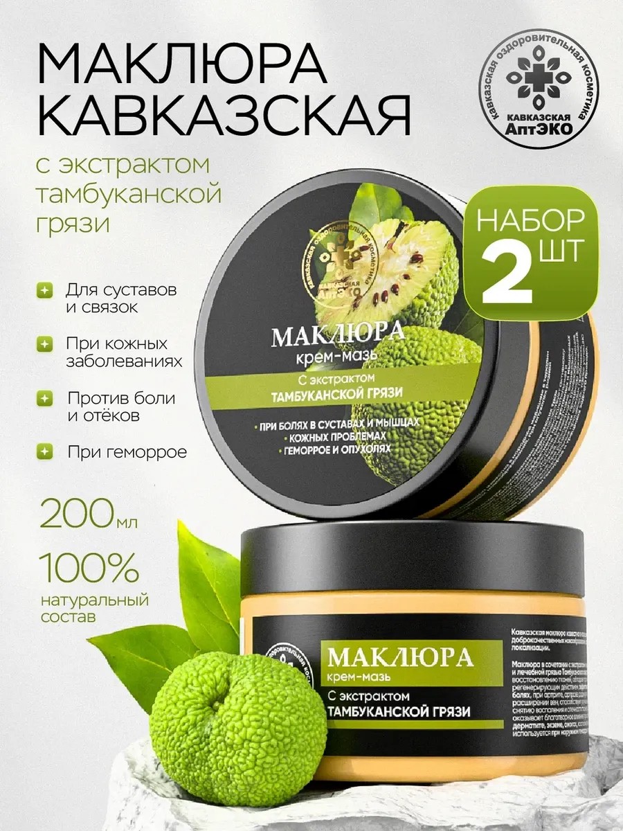 Лечебная натуральная крем мазь маклюра серии Кавказская аптека лечебной косметики Краснодарского края-МИРЭКО — это универсальный продукт для домашней аптечки. Она содержит природные компоненты, которые помогают при различных заболеваниях и проблемах.