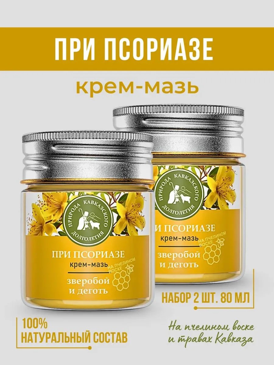 Кавказская Аптека Набор мазь при псориазе для ног и тела деготь и зверобой 2шт