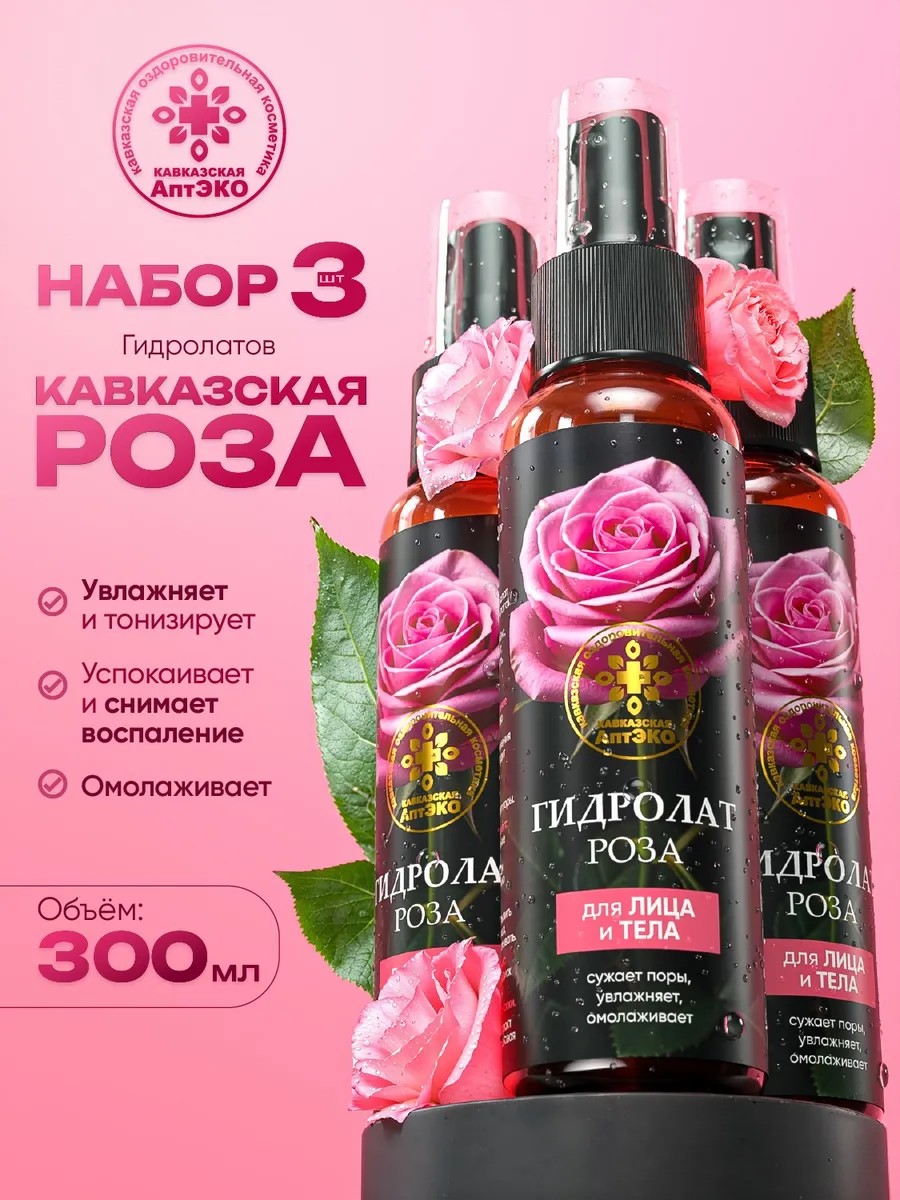 Кавказская Аптека Набор гидролат бархатная роза для лица и тела гиалуроновый 3шт