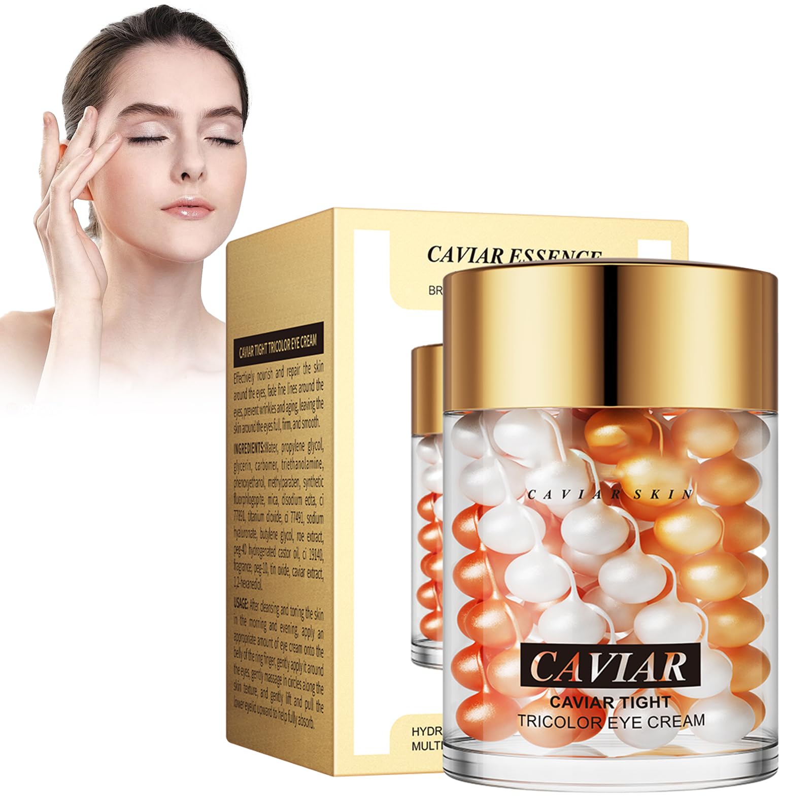 Caviar Firming Eye Cream SAFETY WARNINGGentle and safe for skin: It provides a non-irritating experience to ensure your skin feels comfortable and cared for. Enhance your natural beauty with a luxurious, moisturizing eye cream that supports healthy skin. EASY TO APPLY: The smooth, creamy texture glides easily onto the skin and makes it easy to incorporate into your daily routine. Apply a small amount to the area under the eye and massage gently to achieve best results. This eye cream is suitable for all skin types and is perfect for daily use. Moisturizing and nourishing: Enriched with natural oils and extracts, it helps maintain the skin's moisture balance and leaves it feeling soft and supple. The light formula absorbs quickly and ensures your under-eye area remains hydrated and healthy. TRI-COLOR DESIGN: Each color provides specific benefits and works together to improve the overall effectiveness of the cream. The combination of colors provides a comprehensive treatment of the area under the eye, addressing multiple concerns at the same time. CAVIAR EXTRACT Formula: Caviar eye cream is formulated with a luxurious caviar extract, known for its rich nutrients and revitalizing properties. This eye cream helps to strengthen and firm the delicate skin around the eyes, giving it a more youthful and radiant appearance.Caviar Firming Eye Cream Anti-aging oogcrème met kaviaar-extract, vermindert rimpels, wallen en donkere kringen onder de ogen, verstevigende en voedende oogcrème voor vrouwen en mannen Caviar Firming Eye Cream VEILIGHEIDSWAARSCHUWINGZacht en veilig voor de huid: het biedt een niet-irriterende ervaring om ervoor te zorgen dat je huid comfortabel en verzorgd aanvoelt. Verbeter je natuurlijke schoonheid met een luxe, hydraterende oogcrème die een gezonde huid ondersteunt. EENVOUDIG TE BRENGEN: de gladde, romige textuur glijdt gemakkelijk over de huid en maakt het gemakkelijk om in je dagelijkse routine op te nemen. Breng een kleine hoeveelheid aan op het gebied onder het oog en masseer het zachtjes om de beste resultaten te bereiken. Deze oogcrème is geschikt voor alle huidtypes en is perfect voor dagelijks gebruik. Vochtinbrengend en voedzaam: verrijkt met natuurlijke oliën en extracten, helpt het om de vochtbalans van de huid te behouden en zacht en soepel aan te voelen. De lichte formule absorbeert snel en zorgt ervoor dat je gebied onder de ogen gehydrateerd en gezond blijft. TRI-COLOR-DESIGN: Elke kleur biedt specifieke voordelen en werkt samen om de algehele effectiviteit van de crème te verbeteren. De combinatie van kleuren zorgt voor een uitgebreide behandeling van het gebied onder het oog, dat meerdere zorgen tegelijkertijd behandelt. KAVIAREXTRACT-formule: kaviaar-oogcrème wordt geformuleerd met een luxe kaviaarextract, dat bekend staat om zijn rijke voedingsstoffen en revitaliserende eigenschappen. Deze oogcrème helpt om de gevoelige huid rond de ogen te versterken en te verstevigen, en een jeugdiger en stralender uiterlijk te geven.