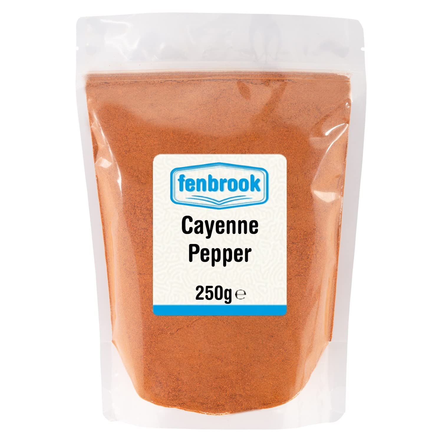Cayenne Pepper by Fenbrook. Naturally grown, harvested, dried and ground in India. Packed in the UK. Cultivated throughout the tropics and subtropics, Cayenne pepper is believed to have originated in Cayenne, French Guiana. It has been used as a food for at least 9,000 years by native Americans and was introduced to Europe by Christopher Columbus in the 15th Century. Since then, it has been adopted as a seasoning around the world – with particular enthusiasm on the Indian subcontinent – lending a lovely, spicy heat to a wide range of dishes. INGREDIENTS Cayenne Pepper SAFETY WARNING Packed on premises that handle celery, cereals containing gluten, mustard, peanuts, sesame, soybeans, sulphur dioxide and sulphites and tree nuts (such as almonds, hazelnuts, walnuts, brazil nuts, cashews, pecans, pistachios and macadamia nuts). See moreProduced to the highest standards | Suitable for Vegan, Vegetarians. In fact, cayenne pepper can be added to just about anything where a piquant kick is required – even homemade soft drinks and cocktails! Try cayenne pepper truffles for a treat that delivers a surprising hit of heat and sets off the richness of the chocolate, or make your own hot pepper sauce – the possibilities are almost endless!. USES: Cayenne pepper’s rich, earthy colour and deliciously warm, smoky aroma make it an appealing addition to many dishes. It’s traditionally been a star ingredient in braises, curries, chillis and stews. It’s also superb in seasonings for all kinds of meat, poultry and fish dishes, and can be sprinkled straight onto many other preparations. PURE, PREMIUM PRODUCT: Fenbrook’s cayenne pepper is grown by farmers in India, harvested, dried and ground before being packed right away to seal in all its flavour and distinctive spicy kick. Cultivated throughout the tropics and subtropics, Cayenne pepper is believed to have originated in Cayenne, French Guiana. It has been used as a food for at least 9,000 years by native Americans and was introduced to Europe by Christopher Columbus in the 15th Century. Since then, it has been adopted as a seasoning around the world – with particular enthusiasm on the Indian subcontinent – lending a lovely, spicy heat to a wide range of dishes.