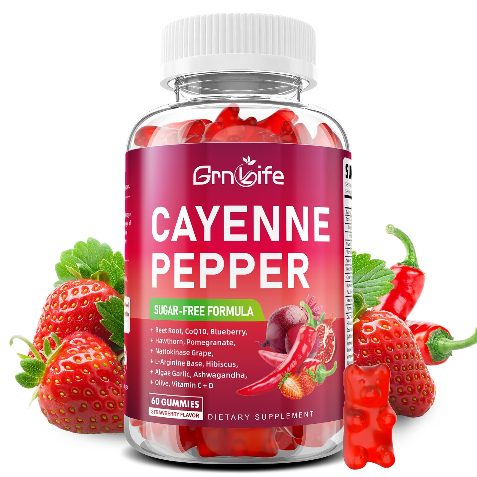 Excellent in Quality: Grnlife cayenne pepper beet root gummies comply with GMP standards and have passed laboratory testing. All batches of the product undergo quality assurance at every stage of production. We are always committed to producing the highest quality dietary supplements and being your health partner. Ideal for Men and Women: The cayenne pepper gummies are suitable for both men and women. They have a comfortable texture after chewing and can be swallowed without water or food, allowing for quick absorption by the digestive system and gentle on the stomach. Each bottle contains 60 gummies, providing a 30-day supply. Beet Root Gummies Blend: each serving unites raw berries, organic beets, adaptogenic ashwagandha and plant-based vitamin K2 to encourage performance enhance your health, making consistent self-care effortless and hassle-free. Support Overall Wellness: Organic cayenne pepper and organic hawthorn berry, and natural polyphenols and nitrates to activate the nitric oxide pathway, providing a comprehensive solution for daily health needs. A Sugar-Free Cayenne Pepper Gummy: Our cayenne pepper gummies acks beetroot, grape seed extract, hawthorn berry, hibiscus and cayenne pepper into mouth-watering gummies engineered, while vitamin C, blueberry and pomegranate co-factors deliver an antioxidants supplement effect that keeps vibrant every single day.