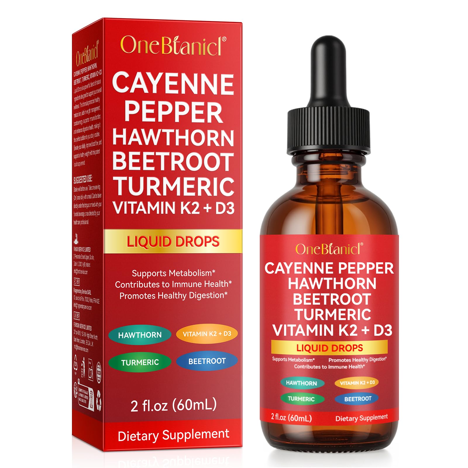 Cayenne Pepper Drops Supplement Liquid Blend of Hawthorn Berry Beetroot Turmeric VIT K2+D3 Daily Health Boost (2oz)
