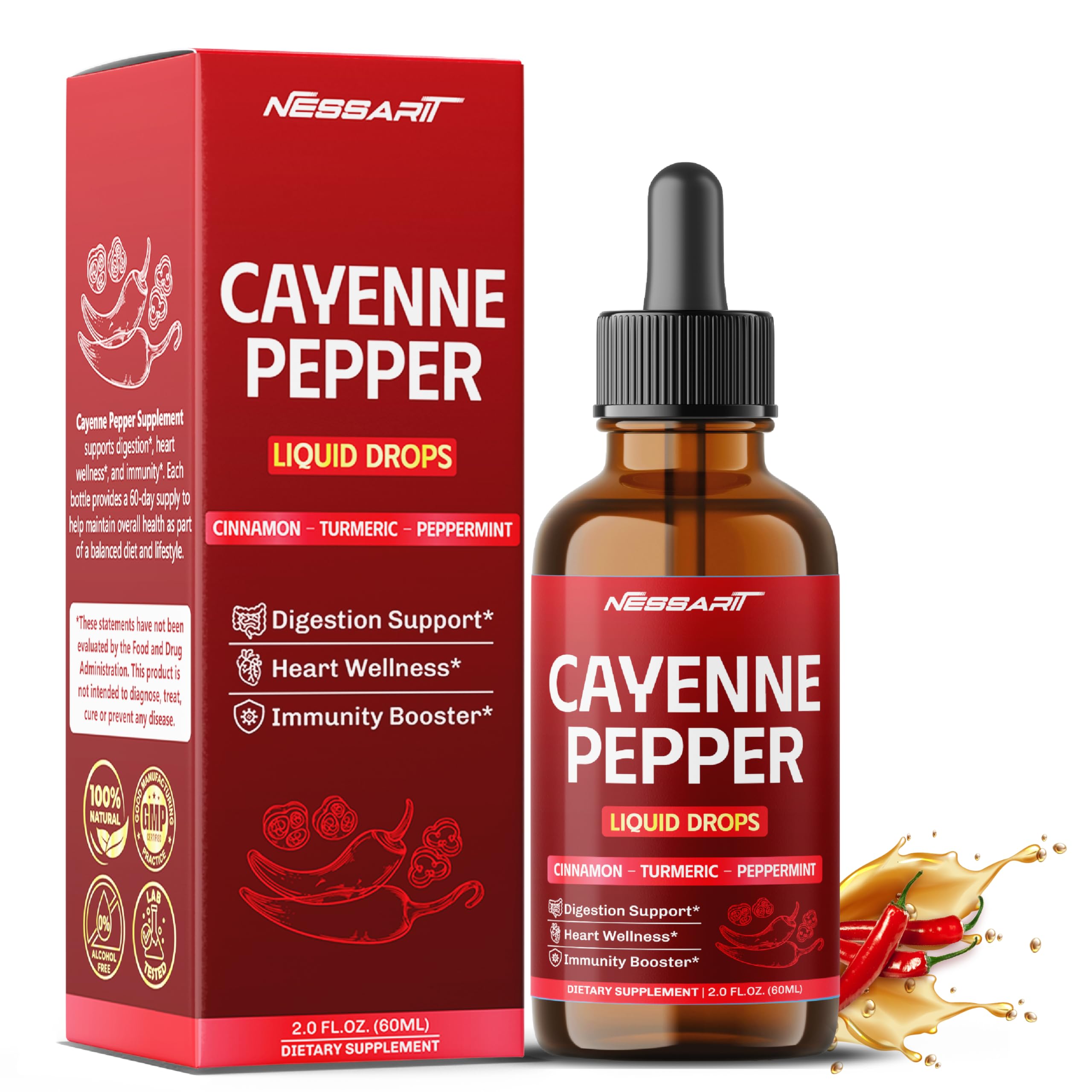 Nessarit Supplements: Laboratory-tested, natural ingredients, and premium quality. Top-Quality Ingredients: Nessarit's Cayenne Pepper Supplement is crafted with meticulously tested ingredients, each validated by third-party labs for both purity and effectiveness. Premium Quality - Natural Origin: Cayenne Pepper Liquid is extracted from pure Cayenne pepper, combined with turmeric, cinnamon, peppermint, and black pepper, creating a powerful formula that supports digestion, promotes healthy circulation, and boosts metabolism. Impressive: This liquid formulation allows for faster absorption compared to powders or capsules. With its highly concentrated formula, each drop delivers optimal nutrient levels, maximizing its effectiveness in supporting overall health. Exceptional Value: Take 1ml per serving, 1–2 times daily, for a convenient and effortless addition to your daily routine.