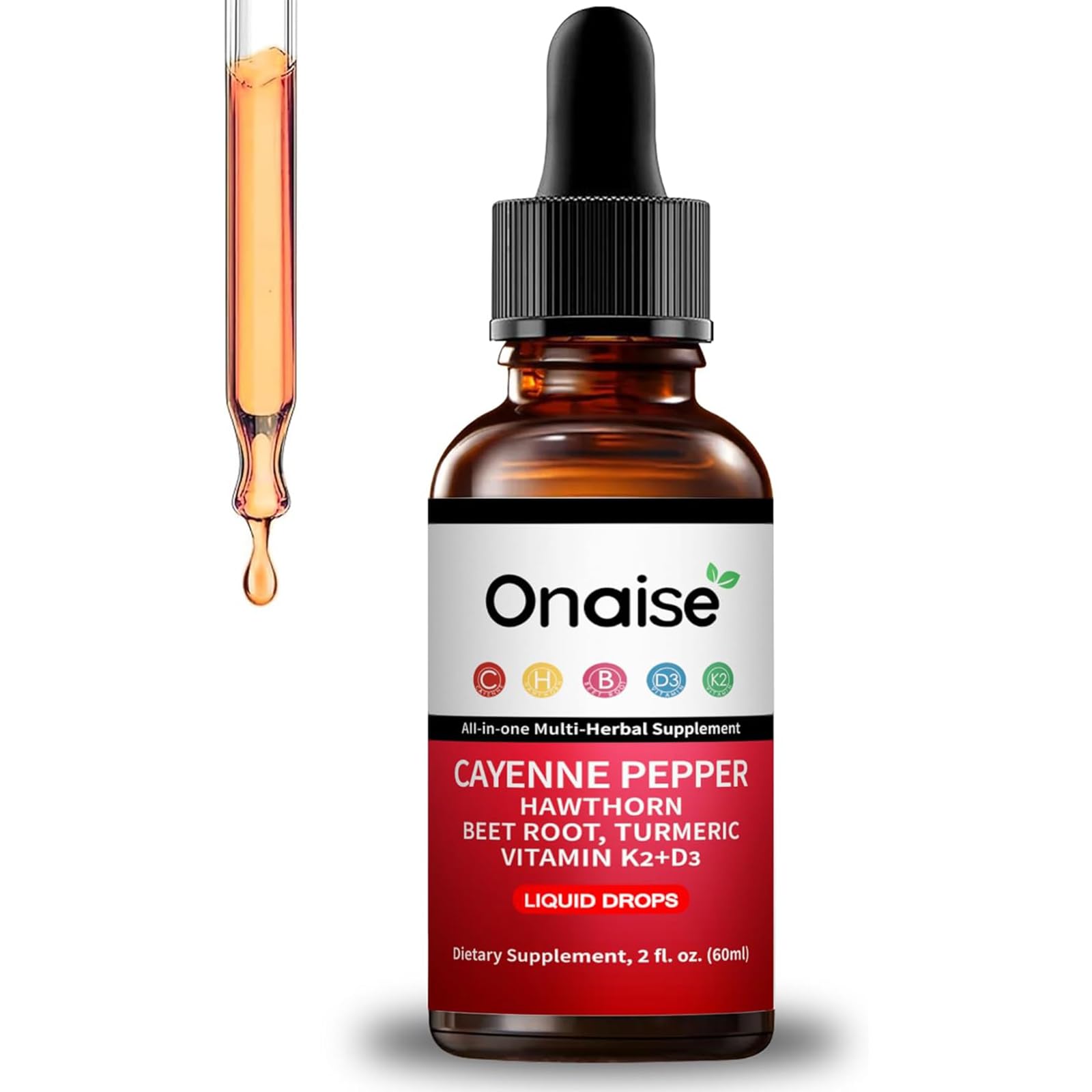 Cayenne Pepper Liquid Drops Liquid Supplement with Organic Hawthorn Beet Root Powder Turmeric Vitamins K2 & D3 Berberine Extract (1)