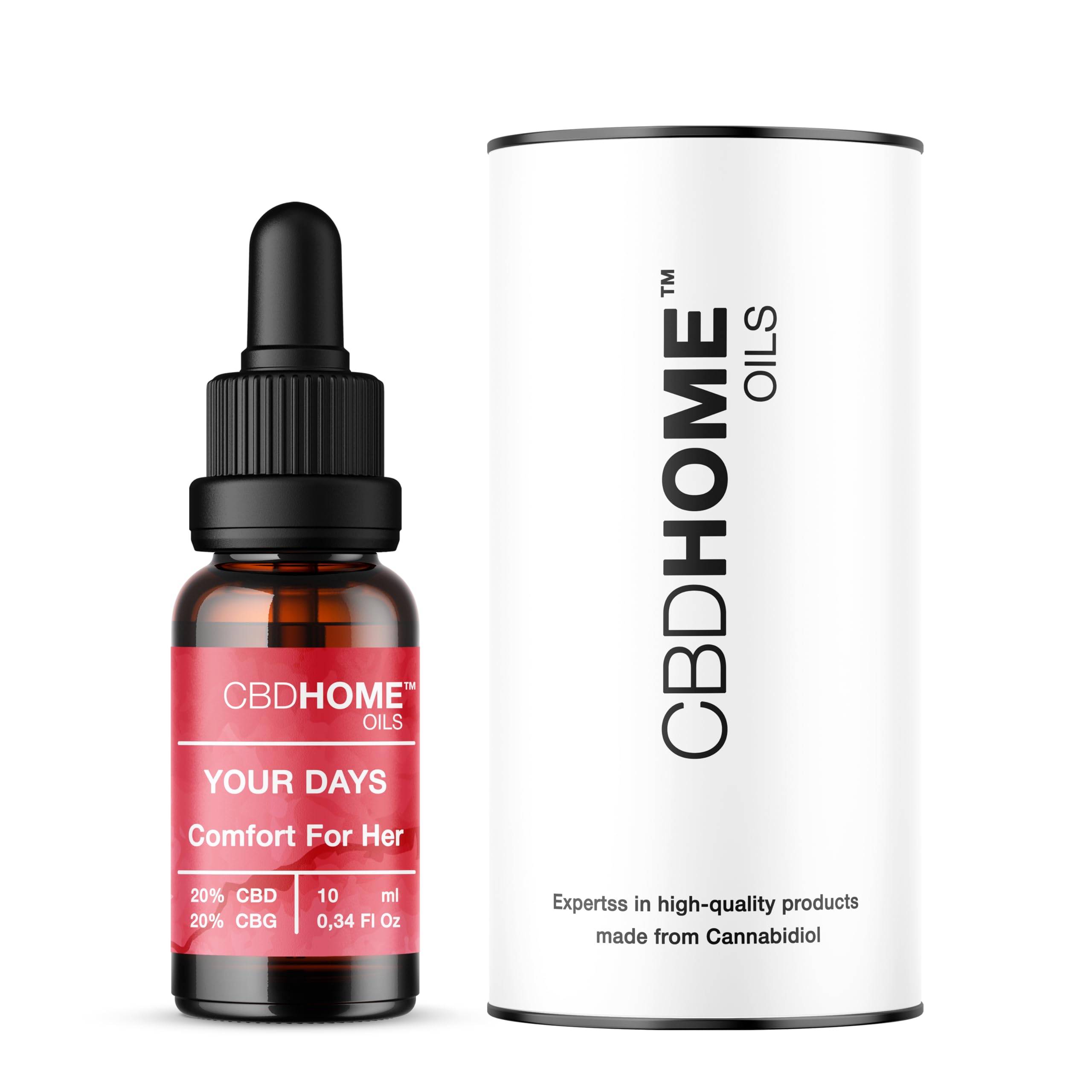 CBD HOME is the fastest-growing cannabidiol brand in Europe. We offer a wide range of high-quality products, combining CBD with other ingredients to promote balance and overall well-being. We manufacture and market our own brand, allowing us to select the best raw materials on the market and offer competitive prices. In this way, we fulfill our goal of making the benefits of CBD accessible to everyone. All our products have been certified by external laboratories, ensuring that safety and quality are the foundation of our brand. Furthermore, they are registered on the Cosmetic Products Notification Portal for topical external use as a cosmetic product, in accordance with European and national legislation. Directions for use: Apply 4 or 5 drops and massage in. Do not ingest. We are proud to be a cruelty-free company, respectful of all forms of life. We are committed to the environment. Through our partnership with Tree-Nation, we contribute to reforestation and offset our carbon footprint. Trust a brand registered in Europe under number 018697845, synonymous with quality, ethics, and commitment to the planet. INGREDIENTS Argania Spinosa Kernel Oil, Cocos Nucifera Oil , Cannabidiol, Cannabigerol, Curcuma Longa Root, Citrus Aurantium Dulcis Peel Oil, Limone, Citral. [ Organic Product] DIRECTIONS Apply 4 to 5 drops to the skin and massage gently. SAFETY WARNING Keep out of sunlight. For topical use only. See moreSAFETY – CBD HOME uses certified cannabidiol, guaranteeing complete safety. FORMULATIONS – Our formulas combine the properties of CBD with the effectiveness of other functional ingredients. We have a constantly evolving R D department. TRANSPARENCY – There are no secrets in our approach: all our products have been tested by independent laboratories, ensuring that safety and quality are the cornerstones of our brand. Our goal is to guarantee that every product is perfect, and our mission is to continue innovating and offering consumers a wide range of CBD products. We have all the necessary analyses and certifications simply ask us. NATURAL PRODUCT – Our CBD comes from organically grown Cannabis Sativa and is certified by ISO 17025 accredited laboratories. Our bases are 100 organic. This product is certified according to European Regulation 848 2018 and the COSMOS standard. We respect the environment by using glass bottles and recycled cardboard packaging. CBD HOME - We manufacture and market our own brand, which allows us to keep prices as low as possible, select all the raw materials we use, and thus make the benefits of CBD accessible to everyone. We offer a wide range of high-quality CBD products. We are a registered European brand. No. 018697845.CBD HOME Oils - Huile pour réduire les symptômes menstruels - Huile d'argan Huile de coco (MTC) Curcuma CBD 20 CBG 20 - 10 ml - Cannabinoïdes certifiés 4000 mg - Fabriqué en UEDESCRIPTION DU PRODUIT DESCRIPTION DU PRODUIT CBD HOME est la marque de produits à base de cannabidiol qui connaît la croissance la plus rapide en Europe. Nous proposons une large gamme de produits de haute qualité, combinant le CBD avec d'autres ingrédients pour favoriser l'équilibre et le bien-être général. Nous sommes fabricants et commercialisons notre propre marque, ce qui nous permet de sélectionner les meilleures matières premières du marché et d'offrir des prix compétitifs. De cette façon, nous remplissons notre objectif de rendre les bienfaits du CBD accessibles à tous. Tous nos produits ont été certifiés par des laboratoires externes, garantissant que la sécurité et la qualité sont le fondement de notre marque. De plus, ils sont enregistrés sur le « Portail de Notification des Produits Cosmétiques » pour une utilisation topique externe en tant que produit cosmétique, conformément à la législation européenne et nationale. Mode d'emploi : Appliquer 4 ou 5 gouttes et masser. Ne pas ingérer. Nous sommes fiers d'être une entreprise sans cruauté, respectueuse de toutes les formes de vie. Nous sommes engagés pour l'environnement, grâce à notre partenariat avec Tree-Nation, nous contribuons à la reforestation et compensons notre empreinte carbone. Faites confiance à une marque enregistrée en Europe sous le numéro 018697845, synonyme de qualité, d'éthique et d'engagement pour la planète. INGRÉDIENTS Argania Spinosa kernel Oil, Cocos Nucifera Oil , Cannabidiol, Cannabigerol, Curcuma Longa Root, Citrus Aurantium Dulcis Peel Oil, Limone, Citral. [ Organic Product]. MODE D'EMPLOI Appliquer 4 à 5 gouttes sur la peau et masser doucement. AVERTISSEMENT DE SÉCURITÉ Tenir hors de la lumière du soleil. Utilisation topique. Voir plusSÉCURITÉ – CBD HOME utilise du cannabidiol certifié, garantissant une sécurité totale. FORMULATIONS – Nos formules associent les propriétés du CBD à l'efficacité d'autres ingrédients fonctionnels. Nous disposons d'un département R D en développement constant. TRANSPARENCE – Pas de secrets dans notre approche : tous nos produits ont été contrôlés par des laboratoires indépendants, garantissant que la sécurité et la qualité sont les piliers de notre marque. Notre objectif est de garantir que chaque produit soit parfait, et notre mission est de continuer à innover et à offrir aux consommateurs une large gamme de produits CBD. Nous disposons de toutes les analyses et certifications nécessaires, il suffit de nous les demander. PRODUIT NATUREL - Notre CBD provient de cultures biologiques de Cannabis Sativa et est certifié par des laboratoires accrédités ISO 17025. Nos bases sont 100 biologiques. Ce produit est certifié selon le règlement européen 848 2018 et la norme COSMOS. Nous respectons l'environnement en utilisant des flacons en verre et des emballages en carton recyclé. CBD HOME - Nous sommes fabricants et commercialisons notre propre marque, ce qui nous permet d'ajuster les prix au maximum, de sélectionner toutes les matières premières que nous uti