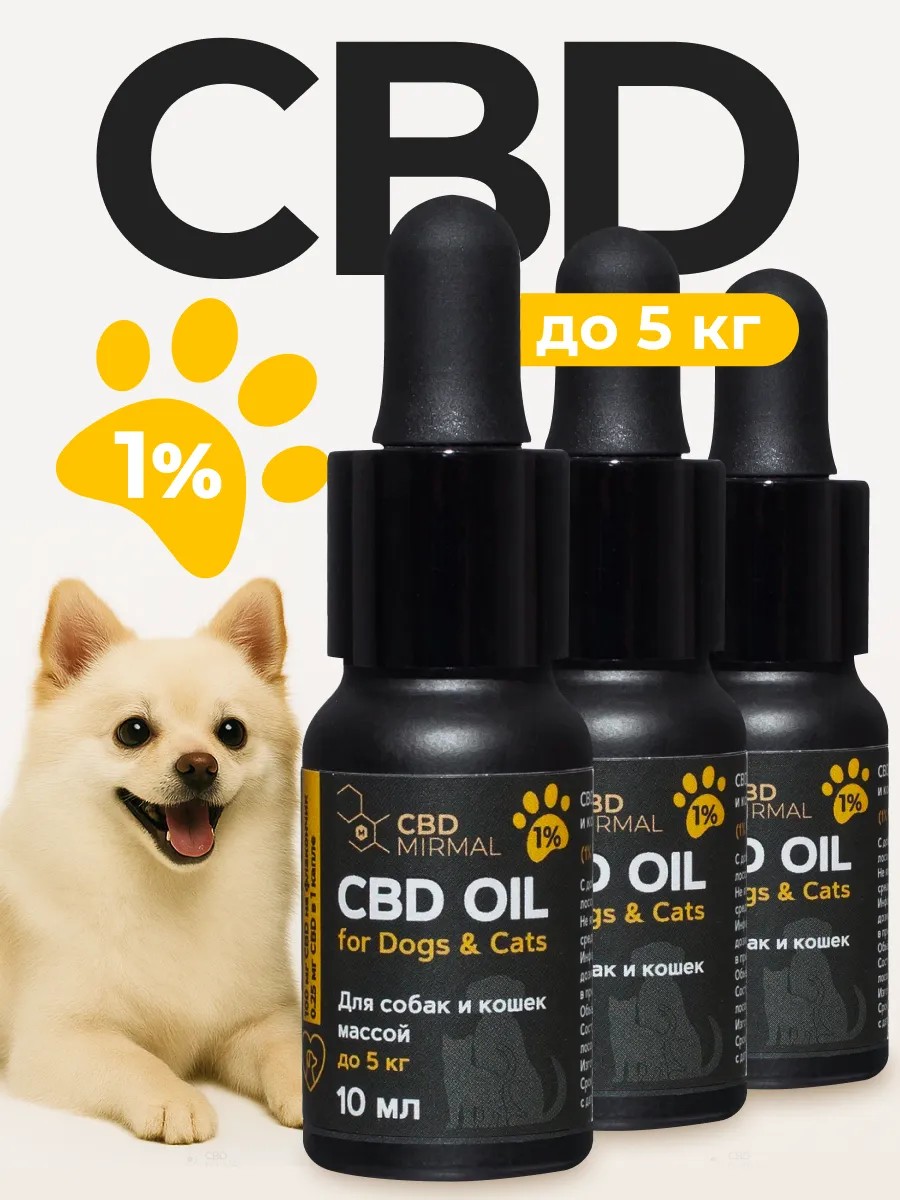 Масло CBD 1% для собак и кошек до 5 кг по 10 мл 3 штуки