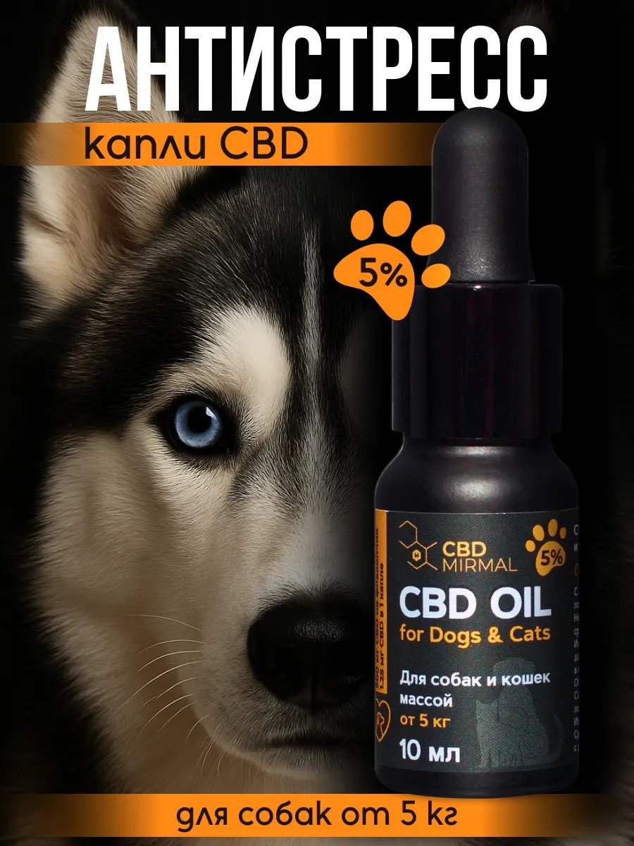 Успокоительное масло CBD для собак от 5 кг (5%) 10 мл
