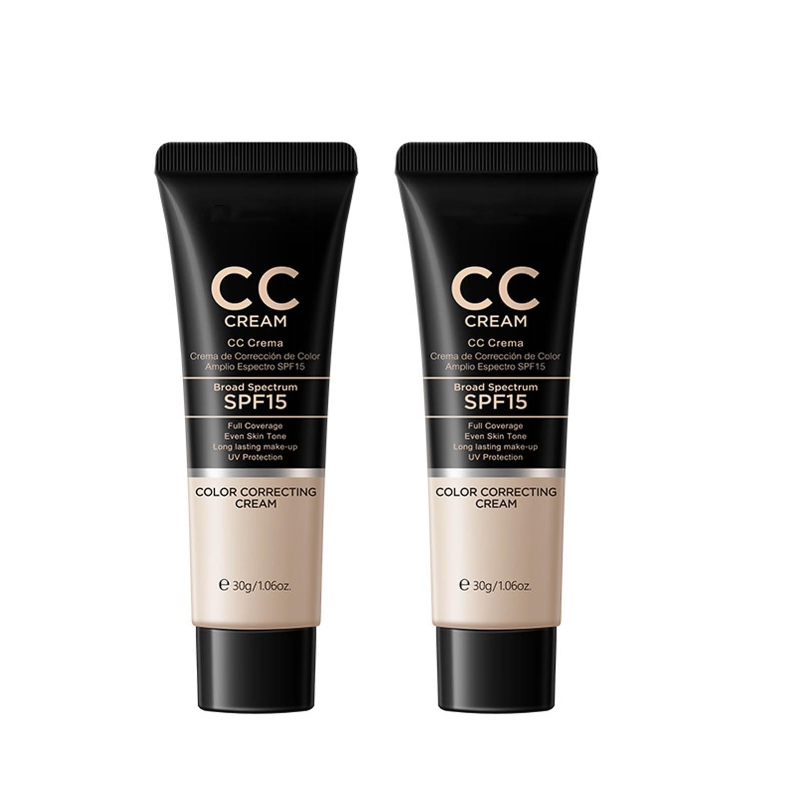 Feature: CC cream will make your skin naturally bright, moisturized, and soft. It blends easily and improves dull skin. Conceals shadow and flaws,highlight your skin color and make your skin smooth with luster in short time. Lightweight and quickly absorbs onto the skin without any dryness or caking. Easy to apply and blend,effectively hydrate and moisturize skin,feels comfortable and long-wearing. The buildable coverage allows this foundation to be worn every day, with a natural makeup look, for any occasion. Specifications: Applicable people: General Net Content: 30G 2 Color:light Applicable skin type: Any skin type Package Included: 2x CC Cream