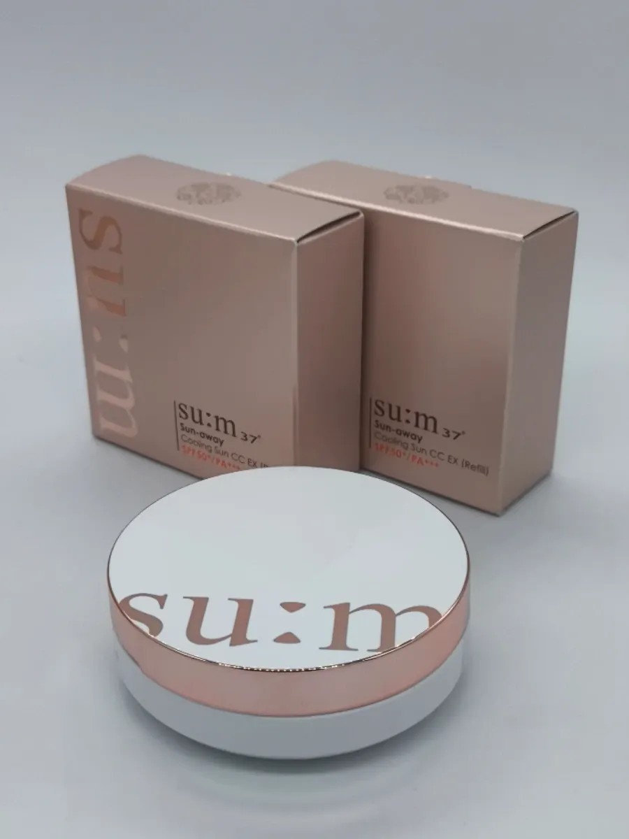 Солнцезащитный кушон Su:m37 Sun-away Cooling Sun CC крем SPF50+/PA+++ 15грамм с 2 сменными блоками