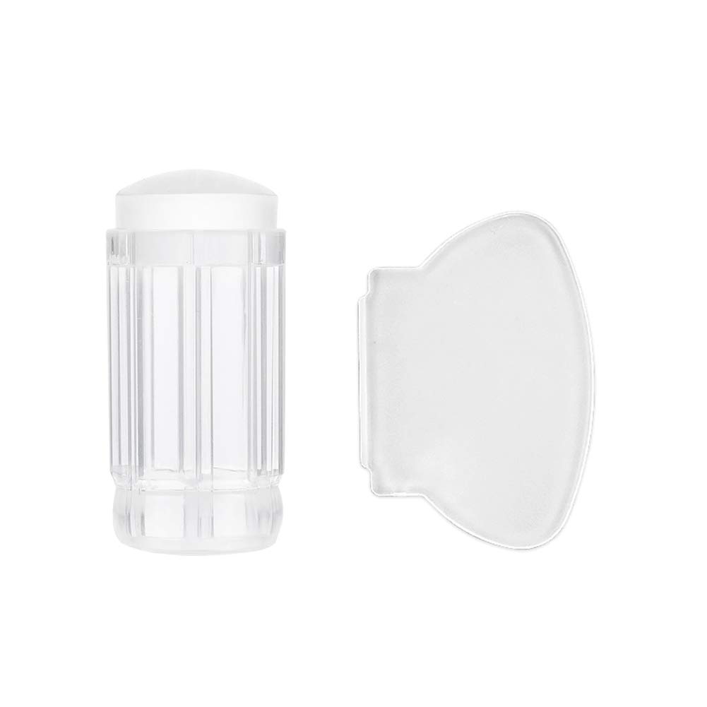 ccHuDE 2 Sets Silicone Nail Art Stamp Jelly Heads with Scraper Nail Stamping Kits for DIY Nail Decor Clear