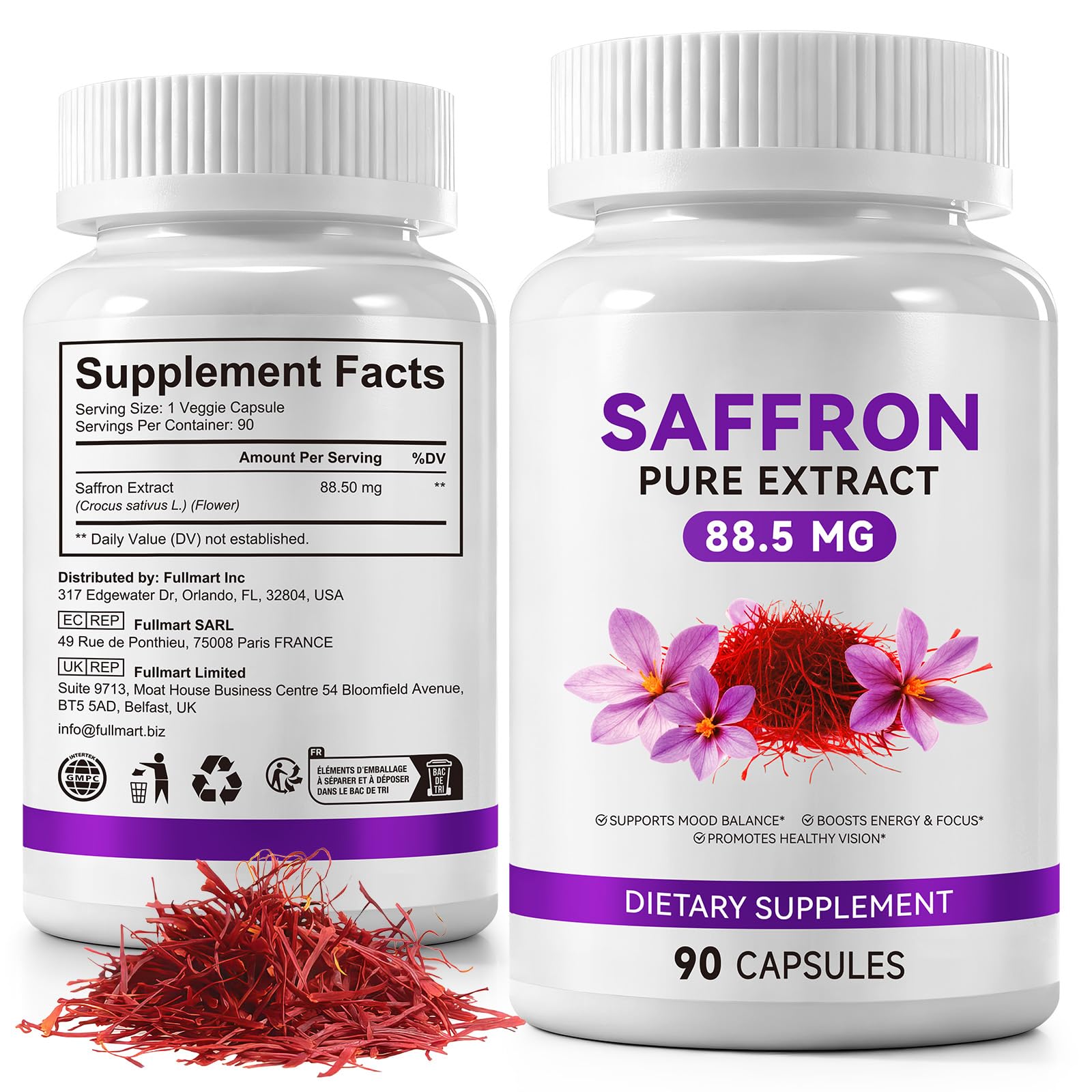 Discover the power of wild saffron Our saffron capsules combine the pure essence of wild crocus flowers in each capsule. With 88.5 mg of highly concentrated extract per unit, we offer one of the strongest formulas on the market – without compromising on purity or effectiveness. Why? - Triple benefit for the modern lifestyle: Whether professional stress, energy gaps or eyestrain due to digital devices – a solution for three common challenges. - Wild origin, maximum availability: Wild harvested saffron contains up to 30 more active ingredients than cultivated products. - Easy to integrate: Take one capsule in the morning with water and benefit all day long. No taste, no effort. The advantages at a glance: 90 days stock (1 x per day). Plant capsule cover. Without artificial additives. For work, study and leisure. Suitable for whom? Those looking for natural support for psychological balance, mental freshness or relaxed eyes will find saffron capsules the ideal companion. Try it out and feel the difference. INGREDIENTS saffron capsules SAFETY WARNING none See moreOptimal quality: 90 capsules at an affordable price, noticeable results through long-term use. Ideal for professionals, students and screen users. Safe quality and vegetable capsules: made in certified facilities capsule cover made of vegetable cellulose (gelatin-free). Tested for residues and compatible. One capsule a day, strong effect – easy to take without complicated preparation. One capsule a day meets all your needs: the box is enough for 3 months of continuous support. Triple effect for your well-being - balanced mood: relieves anxiety and promotes natural serenity in everyday life. Natural energy: increases concentration and vitality for more productivity at work and study. Eye comfort: Reduces tired and dry eyes by using the screen for clearer vision. Highly concentrated wild saffron – contains 88.5 mg of pure wild saffron extract per capsule – no powder mixtures of inferior quality. Highest activity through gentle extraction of wildflowers, free from pesticide residues.Saffraan capsules 90 stuks - 88,5 mg Wild Saffraan extract per capsule - natuurlijke ondersteuning voor stemming, energie en ooggezondheid Ontdek de kracht van wilde saffraan Onze saffraan capsules combineren de pure essentie van wilde krokusbloemen in elke capsule. Met 88,5 mg sterk geconcentreerd extract per eenheid bieden wij een van de sterkste formules op de markt – zonder afbreuk te doen aan zuiverheid of effectiviteit. Waarom? - Drievoudig voordeel voor de moderne levensstijl: of het nu gaat om professionele stress, energiegaten of belaste ogen door digitale apparaten – een oplossing voor drie veelvoorkomende uitdagingen. - Wilde oorsprong, maximale beschikbaarheid: Wild geoogste saffraan bevat tot 30 meer actieve ingrediënten dan gekweekte producten. - Eenvoudig te integreren: Neem 's ochtends een capsule met water in en profiteer de hele dag. Geen smaak, geen moeite. De voordelen op een rijtje: 90 dagen voorraad (1 x per dag). Plantencapsulehoes. Zonder kunstmatige toevoegingen. Voor werk, studie en vrije tijd. Voor wie geschikt? Wie op zoek is naar een natuurlijke ondersteuning voor psychische balans, mentale frisheid of ontspannen ogen, vindt saffraan capsules de ideale metgezel. Probeer het uit en voel het verschil. INGREDIËNTEN saffraan capsules VEILIGHEIDSWAARSCHUWING geen Meer bekijkenOptimale kwaliteit: 90 capsules tegen een gunstige prijs, merkbare resultaten door langdurig gebruik. Ideaal voor professionals, studenten en beeldschermgebruikers. Veilige kwaliteit en plantaardige capsules: gemaakt in gecertificeerde installaties capsulehoes van plantaardige cellulose (vrij van gelatine). Getest op residuen en verdraagbaar. Een capsule per dag, sterk effect – eenvoudig in te nemen zonder ingewikkelde bereiding. Een capsule per dag voldoet aan al je behoeften: de doos is voldoende voor 3 maanden continue ondersteuning. Drievoudig effect voor je welzijn – evenwichtige stemming: verlicht onrustgevoelens en bevordert natuurlijke sereniteit in het dagelijks leven. Natuurlijke energie: verhoogt de concentratie en vitaliteit voor meer productiviteit op werk en studie. Oogcomfort: vermindert vermoeide en droge ogen door gebruik van het scherm voor een helderder zicht. Sterk geconcentreerde wilde saffraan – bevat 88,5 mg zuiver wildsaffraan-extract per capsule – geen poedermengsels van minderwaardige kwaliteit. Hoogste activiteit door zachte extractie van wilde bloemen, vrij van residuen van pesticiden.