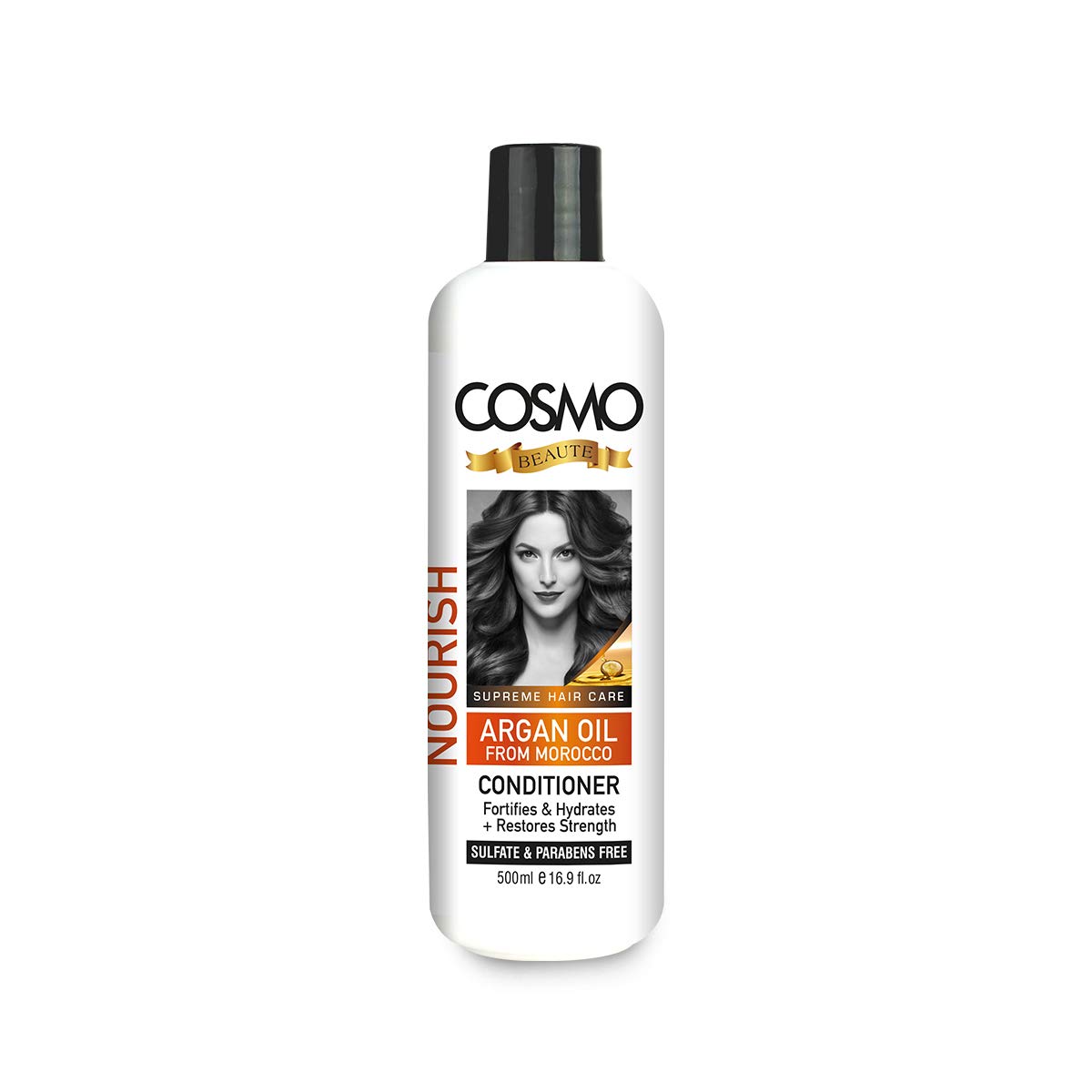 Cosmo Beaute Argan Oil Conditioner 500 ml INGREDIENTS Aqua (Water), Sodium C14-76 Olef Suffinate, Cocamidopropyl Betaine, Coco Glucoside, Cocamide MEA, Glycerin, Perfume, Glycol Distearate, Polyquaternium-10, Sodium PCA, Sodium Lauryl Sulfosuccinate, Hydrolyzed Keratin SAFETY WARNING Caution: For external use only. Avoid contact with eyes. In case of contact with eyes, rinse immediately with plenty of water. Keep out of reach of children. See moreKey ingredients: Argan oil acts as a scalp moisturizer to combat dandruff and dryness. It can even help treat split ends and tame frizzy hair. Hydrolyzed wheat protein thickens and adds volume to thinning hair, adds shine, and repairs damaged hair. It helps increase hair elasticity and continuously restore shine. It helps prevent dryness and can help reduce frizz and boost shine. Strengthens Restores: Nourishes the scalp, strengthens, and repairs hair. Nourish your hair by reviving it with our Argan Oil Conditioner, which fortifies and hydrates as it gently cleanses, leaving hair manageable, supple, and full of shine, without weighing it down.Cosmo Beaute Argan Oil Conditioner 500 mlDESCRIPTION DU PRODUIT DESCRIPTION DU PRODUIT Cosmo Beaute Argan Oil Conditioner 500 ml INGRÉDIENTS Aqua (Water), Sodium C14-76 Olef en suffonate, Cocamidopropyl Betaine, Coco Glucoside, Cocamide MEA, Glycerin, Perfume, Glycol Distearate, Polyquaternium-10, Sodium PCA, Sodium Lauryl Sulfosuccinate, Hydrolyzed Keratin AVERTISSEMENT DE SÉCURITÉ Attention : pour une utilisation externe. Avoid contact with eyes. En cas de contact avec les yeux, rinse immédiatement avec plenty of water. Keep out of reach of children. Voir plusIngrédients clés : huile d'argan agit comme un moisturizer pour le scalp pour fight dandruff et dry scalp. It can even help to treat split ends and tame frizzy hair. Where as hydrolyzed wheat protein thickens and adds volume to thinning hair, adds shine and repairs damaged hair. Aide à augmenter l'élasticité des cheveux et à restaurer constamment la brillance des cheveux. Aide à prévenir le séchage et peut aider à réduire la fizziness et à stimuler la brillance. Strengthens Restore Nourishes Scalp, Strengthens and repairs hair. Nourish your hair by reviving it with our Argan Oil Conditioner that fortifies and hydrates hair as it gently cleanses, leaving hair manageable, supple, and full of shine, without weighing it down.