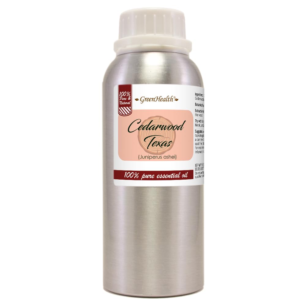 Cedarwood (Texas) Essential Oil – 8 fl oz – Aluminum Bottle w Locking Cap – 100 Pure Natural – GreenHealthBring the warm, grounding essence of GreenHealth Cedarwood (Texas) Essential Oil into your home. Steam-distilled from the wood of Juniperus mexicana, this 100 pure and natural essential oil features a rich, woody aroma perfect for aromatherapy, DIY projects, and natural home care.Key Benefits:✓ Rich, Earthy Aroma – Creates a relaxing and grounding atmosphere.✓ Versatile for DIY Projects – Ideal for making candles, soaps, room sprays, and air fresheners.✓ Home Freshening Properties – Perfect for adding to cleaning solutions and air purifiers.✓ 100 Pure Undiluted – Free from synthetic additives, fillers, or chemicals.Product Details: Size: 8 fl oz Packaging: Durable aluminum bottle to protect against light and oxidation. Locking Cap: Leak-proof design for secure storage and travel. Sustainably Sourced: Responsibly harvested to ensure purity and quality.How to Use: Aromatherapy: Add a few drops to a diffuser to create a warm, grounding atmosphere. DIY Creations: Blend into homemade candles, soaps, and natural air fresheners. Massage Skincare: Dilute with a carrier oil for a rich, woody scent. Home Freshening: Mix with water or vinegar for a natural cleaning solution.Enhance your home and wellness routine with the pure, natural power of GreenHealth Cedarwood (Texas) Essential Oil!