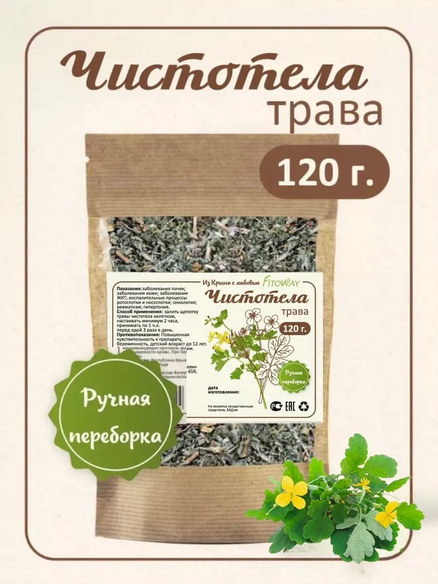 | Комплектация | Чистотел трава 120грамм - 1 упаковка |