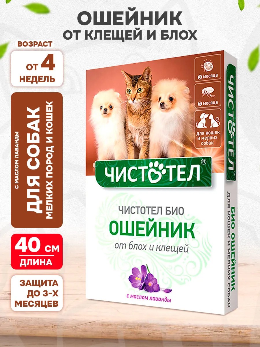 Чистотел Био Ошейник от клещей и блох для мелких собак и кошек 40 см