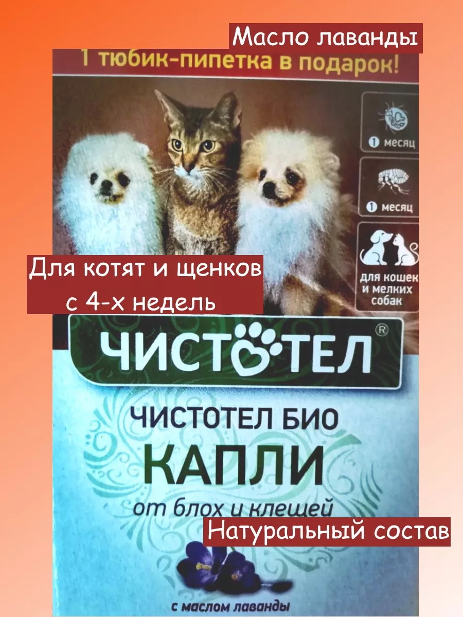 Чистотел био - капли для кошек и собак с 4-недельного возраста. Содержит только натуральные вещества против блох, вшей, власоедов, комаров и так далее. Благодаря отсутствию в составе агрессивных веществ бережно и заботливо защищает вашего питомца от проблем с насекомыми, и не оказывает нагрузки на организм. Масла, входящие в состав препарата уменьшают зуд и раздражение. Не купать животное 3 дня до нанесения средства и три дня после. Наилучший эффект достигается в сочетании с био-ошейниками Чистотел. Ошейник надевается через три дня после обработки каплями.
