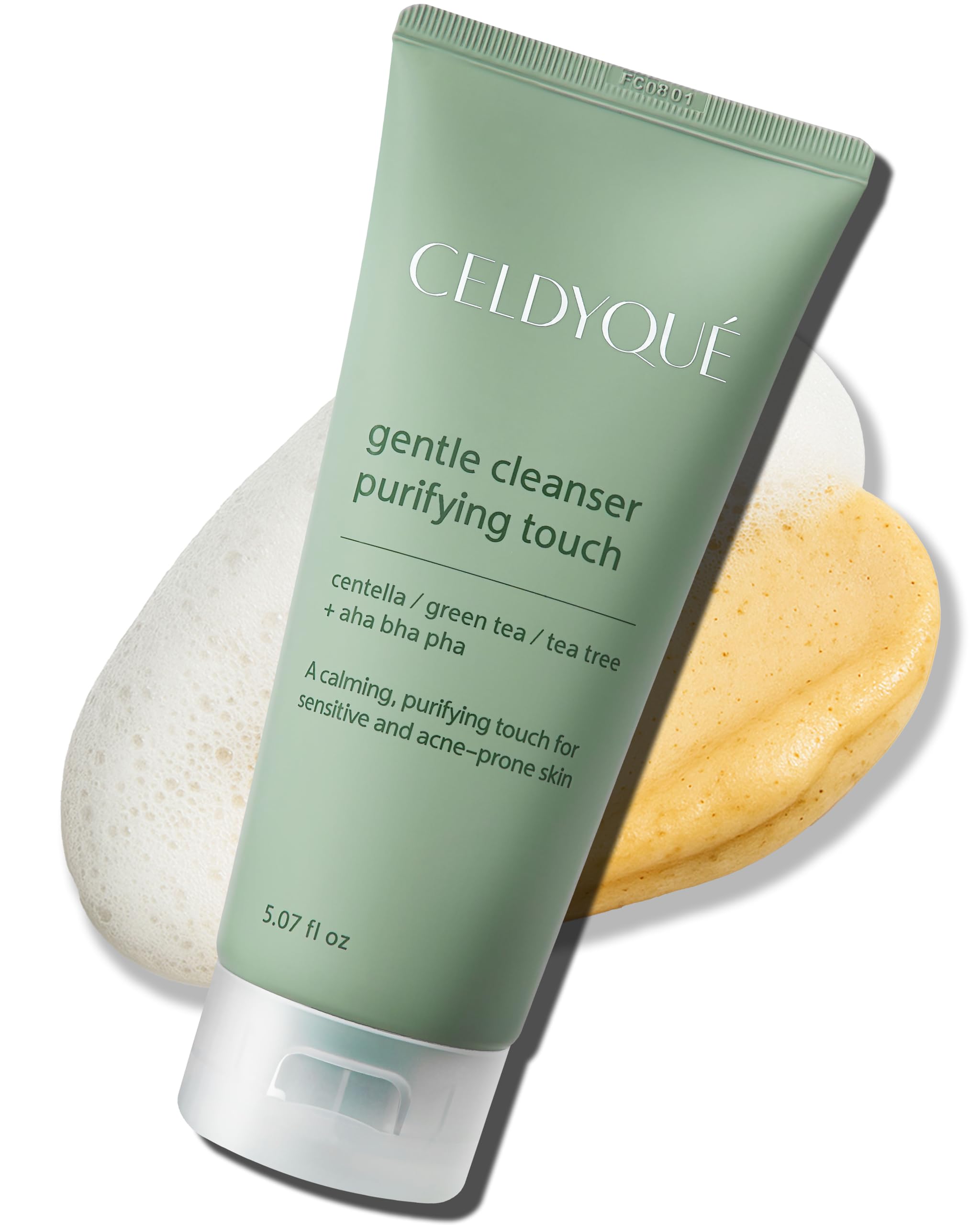 CELDYQUE Gentle Cleanser Purifying Touch Centella Tea Tree & Green Tea | AHA BHA PHA Exfoliating Face Wash for Sensitive Acne-Prone Skin | Calming Pore Purifying Korean Cleansing Foam 5.07 fl oz