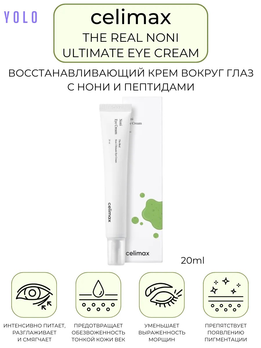 Celimax The Real Noni Ultimate Eye Cream, a restorative eye cream, eliminates irritation and dryness, intensively nourishes, improves elasticity, smoothes and softens the skin under the eyes.