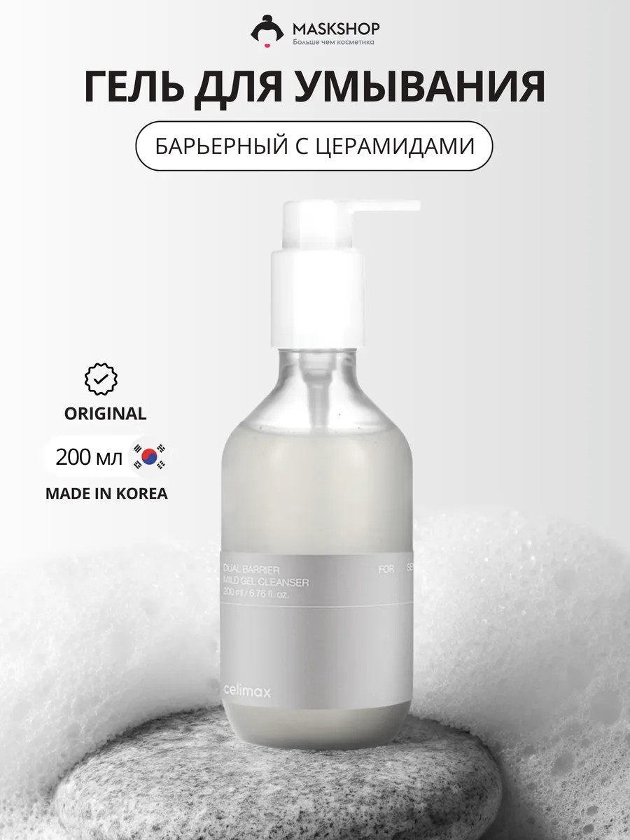 Мягкий гель - пенка для умывания с церамидами Celimax Dual Barrier Mild Gel Cleanser это нежное средство для ухода за кожей лица из Кореи, бережно очищает от загрязнений, не вызывает раздражений и поддерживает защитный барьер. Комплекс керамидов этой умывалки поддерживает правильный уровень увлажненности в коже, разглаживает поверхность, заботится о сохранности гидролипидной мантии. Экстракт миротамнуса регенерирует кожу, оживляет ее, насыщает влагой, устраняет все признаки обезвоженности. Витамин С в форме аскорбиновой кислоты выравнивает тон, улучшает цвет лица, освежает кожу, оказывает антиоксидантную поддержку. Умывашка на основе растительных ПАВов деликатно удаляет все загрязнения, остатки кожного сала и макияжа, идеально подходит для сухой и чувствительной кожи.
