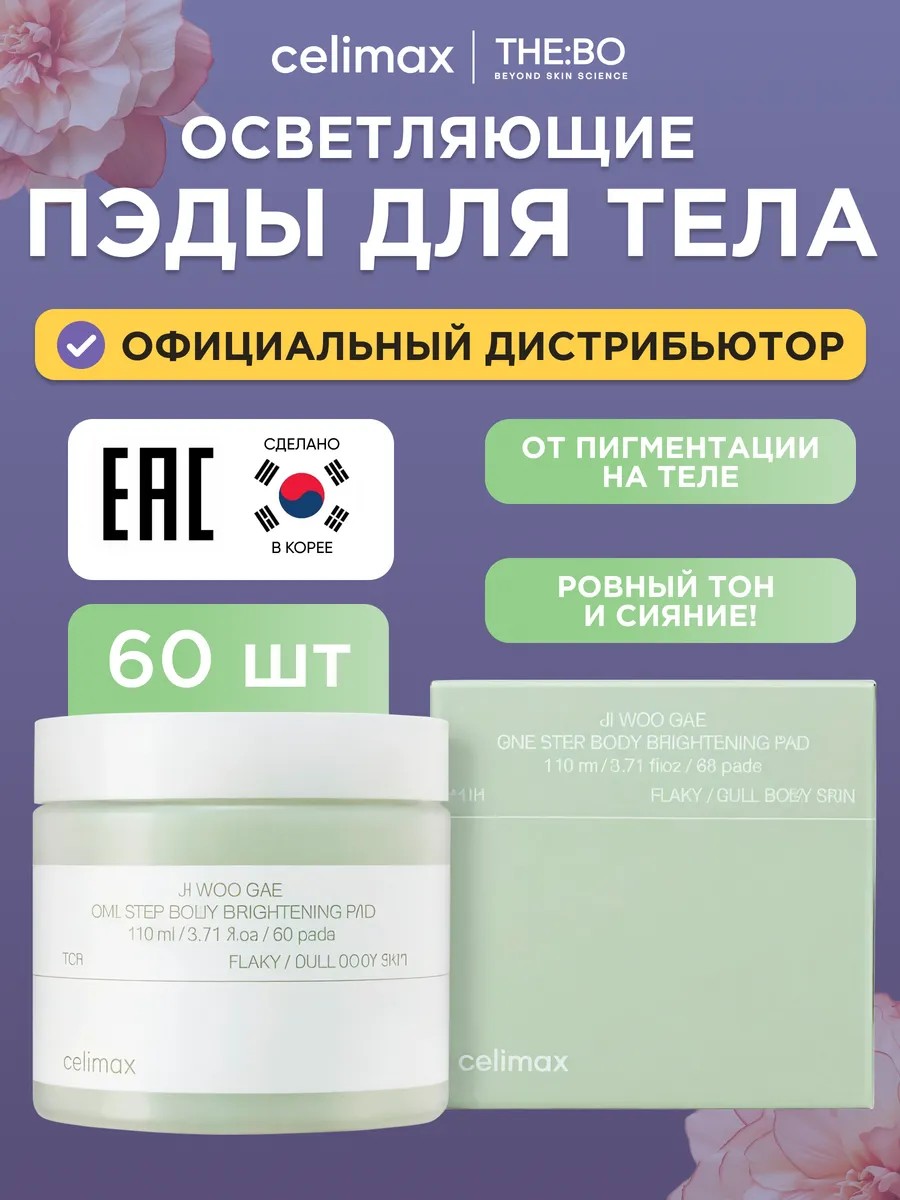 celimax Ji Woo Gae One Step Body Brightening Padcelimax Ji Woo Gae One Step Body Brightening Pad осветляющие пэды для тела — идеальное средство для поддержания ровного и сияющего тона кожи тела.