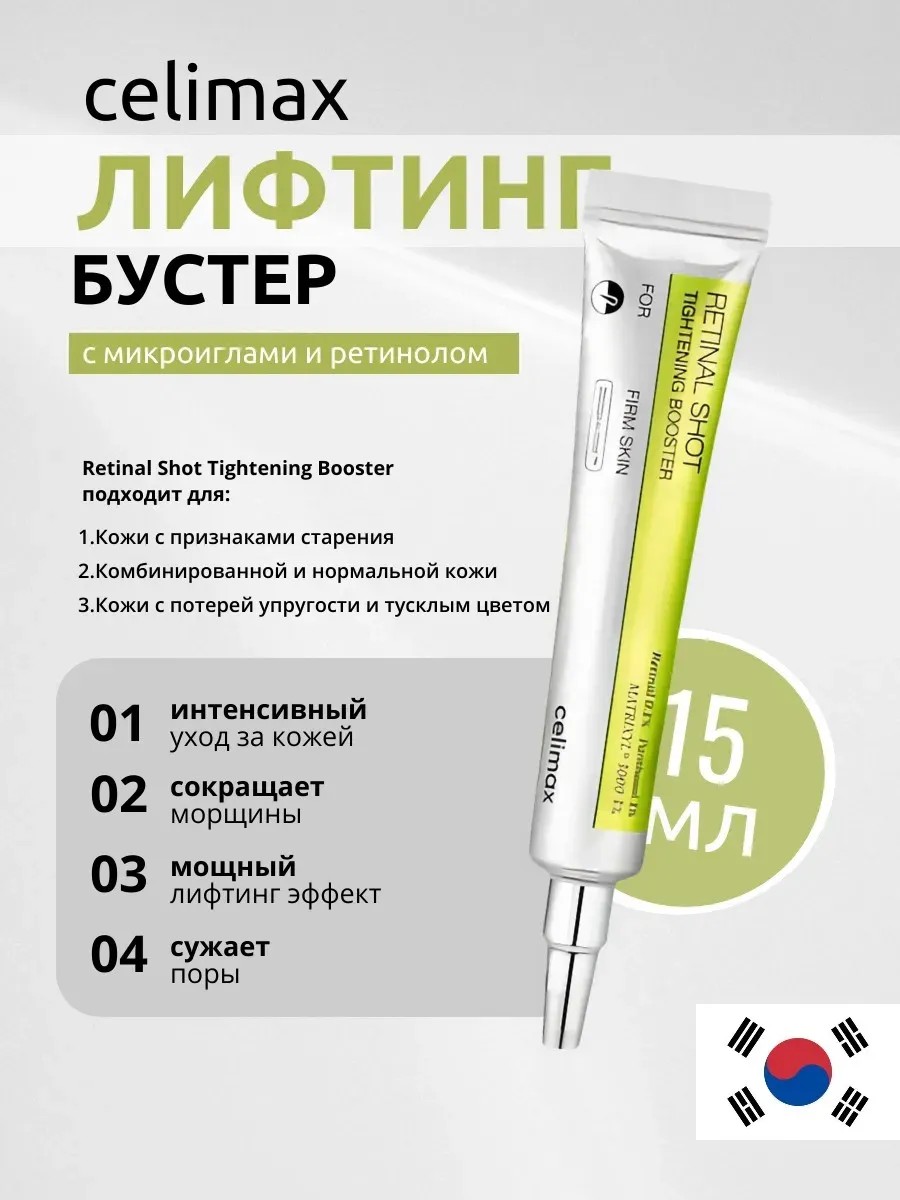 Подтягивающий бустер-крем с ретиналем Celimax The Vita-A Retinal Shot Tightening Booster — средство для локального применения в антивозрастном уходе. Продукт оказывает выраженный лифтинг-эффект, предотвращает птоз тканей, поддерживает их тонус, сокращает статические и мимические морщины, уменьшает их глубину. При регулярном использовании крем выравнивает тон и текстуру кожи за счёт сужения пор и осветления гиперпигментации. Содержит ретиналь, микроиглы, комплекс Matrixyl3000, пантенол и ниацинамид.