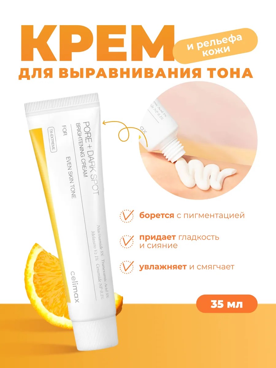 Celimax Pore+Dark Spot Brightening Cream combats pigmentation, tightens enlarged pores, eliminates dullness, and imparts smoothness and a healthy glow.