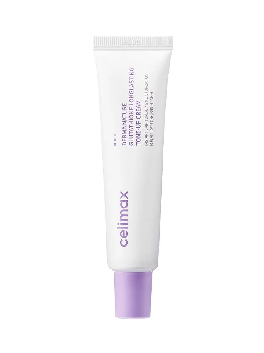 Celimax Derma Nature Glutathione Longlasting Tone-Up Cream Крем с глутатионом против пигментации 35мл. Продукт увлажняет, разглаживает микрорельеф, устраняет тусклость и следы усталости, возвращает внутреннее сияние. Крем с нежной текстурой отлично подходит в качестве базы под макияж. Средство отлично впитывается, не выбеливает и не оставляет следов, обладает прекрасной стойкостью до 9 часов. Главный отбеливающий компонент формулы, глутатион (1000 ppm) — это экстракт ферментированного риса, который оказывает мощное антиоксидантное действие и осветляет благодаря способности ингибировать тирозиназу — фермент, вырабатывающий меланин. Ниацинамид или витамин B3 (20,000 ppm) в составе препятствует транспортировке пигмента меланина в верхние слои кожи, за счёт чего предотвращает образование пигментных пятен и отбеливает гиперпигментацию, а также устраняет жирный блеск и нормализует работу сальных желез. Дополнительные действующие компоненты: Экстракт корня солодки деликатно осветляет, борется с раздражением, повышает выработку коллагена. Бета-глюкан ускоряет заживление, защищает клетки от свободных радикалов, отлично увлажняет и оказывает антивозрастное действие. Экстракт центеллы азиатской снимает покраснение и раздражение, уменьшает видимость сосудистой сетки и симптомы купероза, повышает эластичность. Диоксид титана осветляет и выравнивает тон. Подходит для всех типов кожи. Способ применения: после очищения, тонизирования и использования сыворотки нанесите крем на лицо, распределите по массажным линиям. Можно использовать для лица и тела.