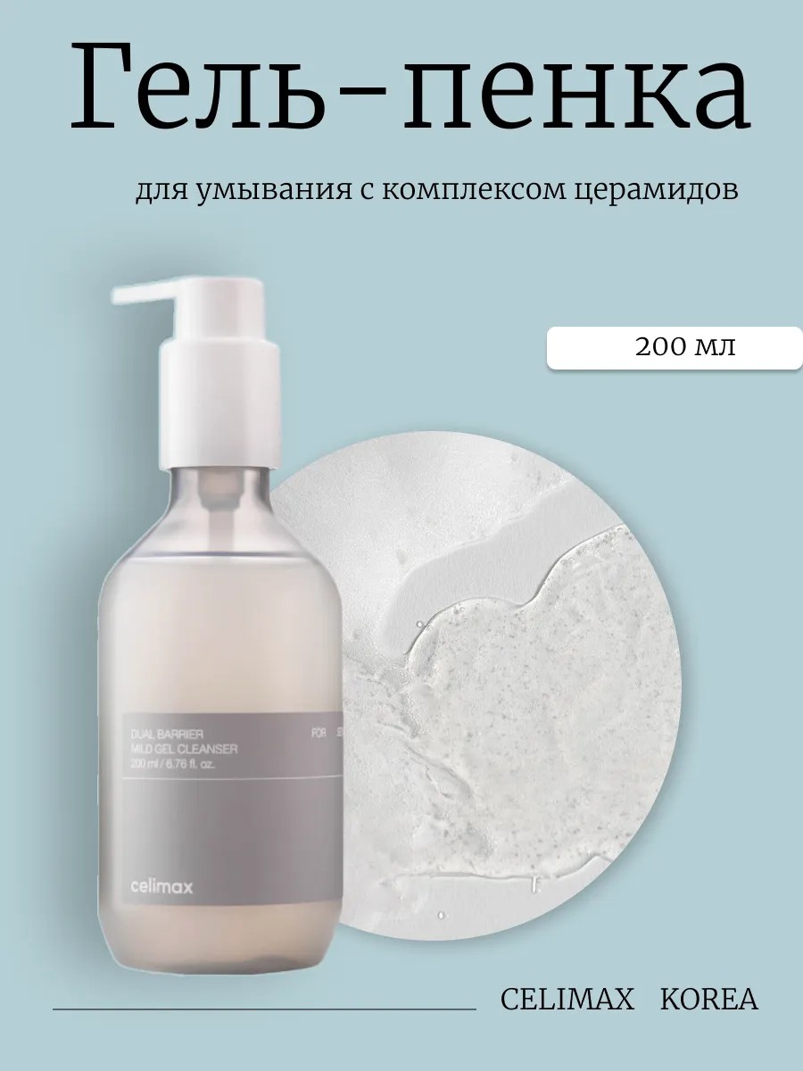 Нежный гель-пенка для умывания с комплексом церамидов Celimax Dual Barrier Mild Gel Cleanser мягко очищает кожу не нарушая её барьерных функций и не повреждая липидный слой. Продукт на основе растительных ПАВов деликатно удаляет все загрязнения, остатки кожного сала и макияжа, идеально подходит для сухой и чувствительной кожи.
