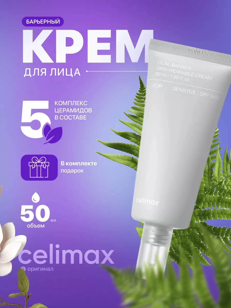 Благодаря уникальной формуле Celimax крем легко впитывается, не оставляя жирного блеска. Ваша кожа станет увлажненной, упругой и сияющей уже после первого применения. Позвольте себе роскошный уход за лицом с Celimax Dual Barrier Skin Wearable Cream и почувствуйте разницу!