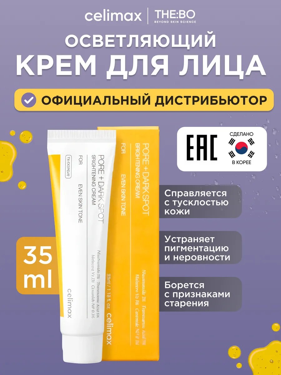 Осветляющий крем Celimax Pore+Dark Spot Brightening Cream предназначен для борьбы с пигментными пятнами и расширенными порами. Он эффективно справляется с тусклостью, придавая гладкость и здоровое сияние. Препарат способствует выравниванию тона кожи, устраняя последствия УФ-излучения.