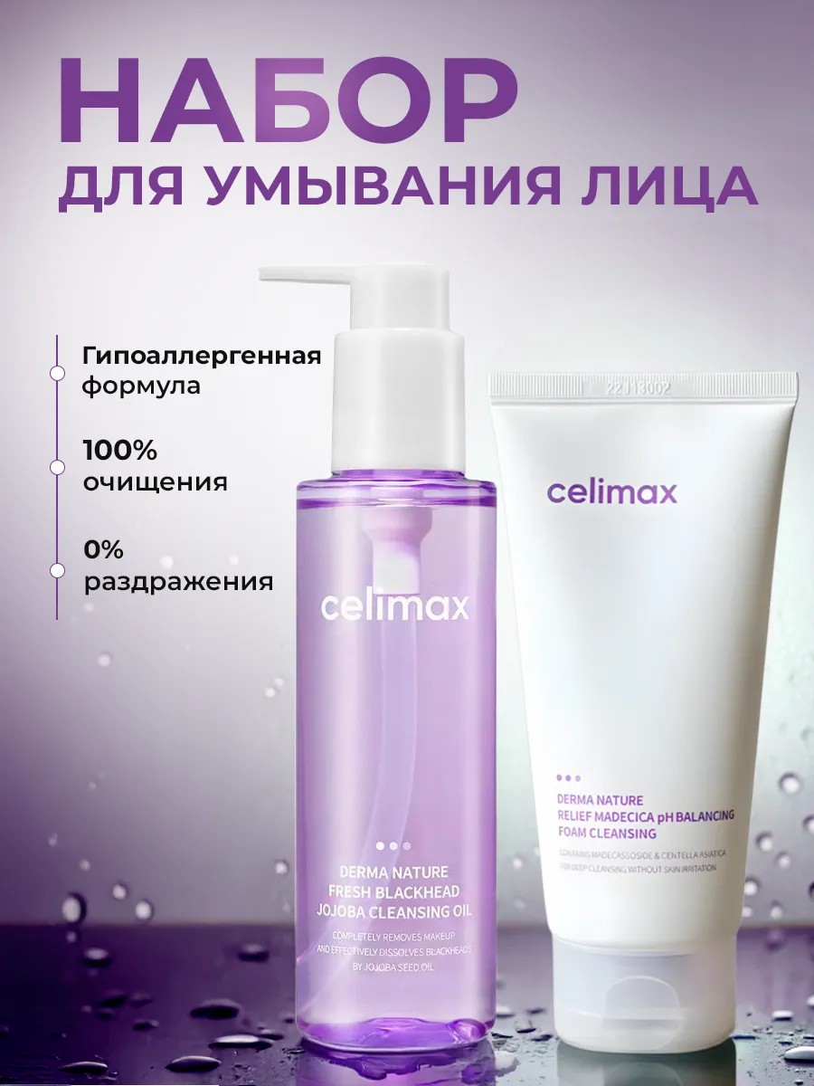 Набор корейской уходовой косметики направлен на борьбу с проблемной, комбинированной и жирной кожей. Гидрофильное масло Celimax Derma Nature Fresh Blackhead Jojoba Cleansing Oil бережно очищает поры, устраняет жирный блеск и борется с чёрными точками, удаляет даже стойкий макияж.