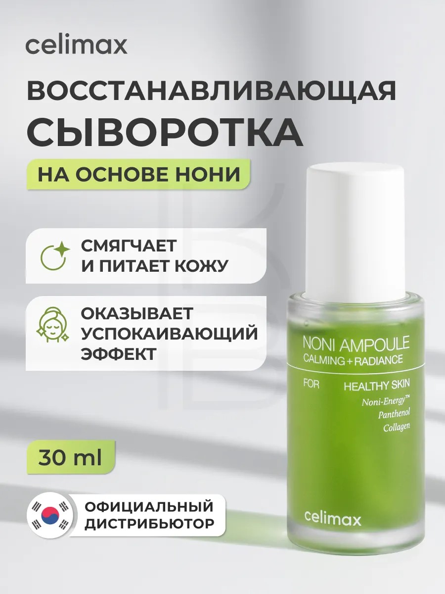 Celimax The Real Noni Energy Ampoule 30ml — высокоэффективная корейская сыворотка с усиленной формулой Noni Energy, которая прошла 10 клинических тестов, включая антиоксидантную активность, улучшение текстуры кожи, выравнивание тона и стойкости макияжа. Это решение №1 для восстановления обезвоженной и чувствительной кожи, независимо от пола и возраста — подходит и женщинам, и мужчинам, а также подросткам.