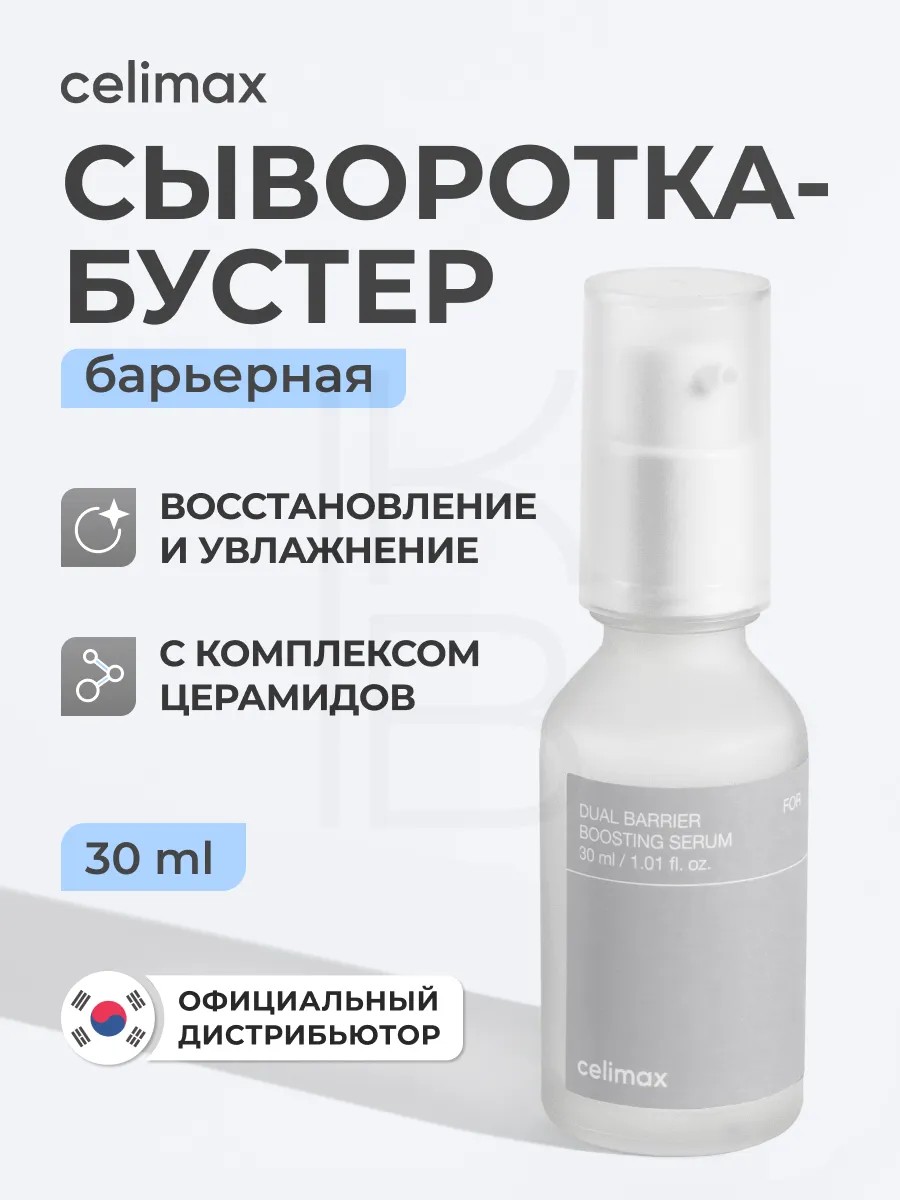 Celimax Dual Barrier Boosting Serum — оригинальная антивозрастная сыворотка бустер с комплексом церамидов, созданная для глубокого увлажнения, укрепления барьера и защиты от раздражений. Благодаря мягкой, но эффективной формуле средство подходит для всех типов кожи, даже чувствительной, и становится незаменимой частью ухода, направленного на борьбу с несовершенствами и морщинами.