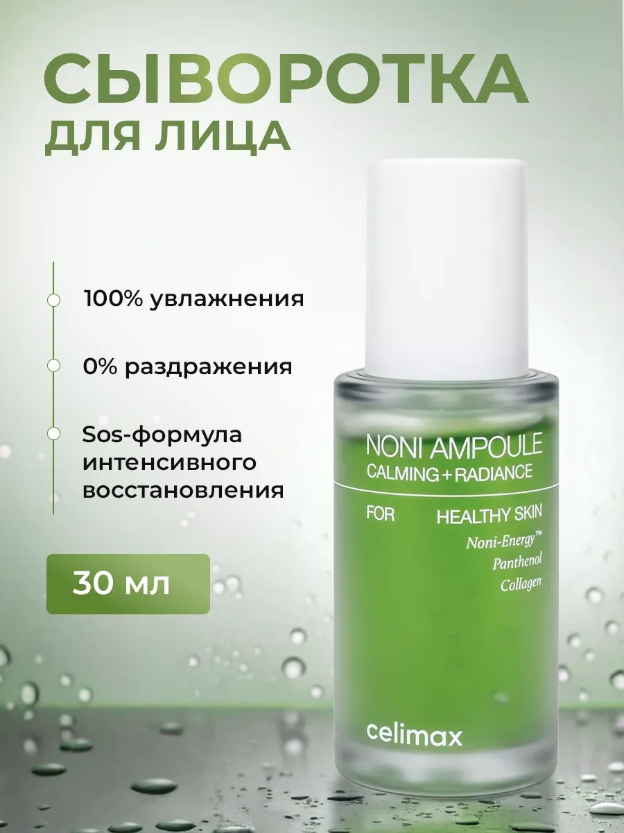 Корейская сыворотка от морщин Celimax The Real Noni Energy Ampoule восстанавливает и укрепляет кожу, смягчает, выравнивает рельеф и уменьшает воспаление, снимает раздражение и зуд, оздоравливает и укрепляет защитный барьер.