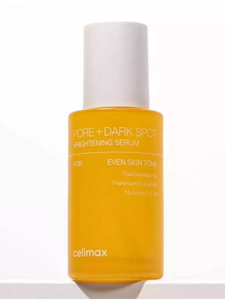 Легкая увлажняющая сыворотка для работы с гиперпигментацией Celimax Pore + Dark Spot Brightening Serum с осветляющей способностью. В числе действующих веществ – транексамовая кислота, ниацинамид и запатентованный комплекс Melazero V2, которые помогают помогают от пигментных пятен на лице, повысить стойкость кожи к воздействию солнца, а также осветлить уже имеющиеся цветовые нюансы (от веснушек, постакне). Гиалуроновая кислота и басаболол дополняют осветляющий эффект глубоким увлажнением и успокаивающим действием, чтобы кожа ощущала свежесть, гладкость и комфорт на протяжении дня. Гиалуроновая питательная отбеливающая сыворотка селимакс относится к группе профессиональной корейской косметики. Подходит всем типам кожи, в том числе для жирной, проблемной, комбинированной, чувствительной, сухой. Что делает: – Комплекс Melazero V2 (1%) помогает от пигментации, он является ингибитором, предупреждает образование пигмента в период активного солнца, активного ухода или при склонности к образованию постакне и веснушек. – Транексамовая кислота (3%) – осветляющий компонент. Транексамовая кислота не раздражает и не повышает чувствительность кожи к солнцу, усиливает отбеливающий потенциал ниацинамида и других антиоксидантов, а также выравнивает тон лица, освежая и омолаживая кожу лица. – Ниацинамид (5%) обладает восстанавливающим и глубоко увлажняющим эффектами, замедляет раннее старение, дарит сияние, помогает от прыщей, акне, покраснений, комедонов и черных точек. Очищает и сужает поры. – Бисаболол облажает успокаивающим эффектом и сосудосуживающим свойством, снимает красноту и отеки. – Гиалуроновая кислота дарит глубокое увлажнение сухой коже, помогает от мимических и глубоких морщин, улучшается текстура кожи и рельеф, появляется красивое свечение, а также повышается эластичность и упругость. Уход за кожей лица - трепетный и важный этап общего ухода для тела. Уходовая косметика направлена на борьбу с несовершенствами.