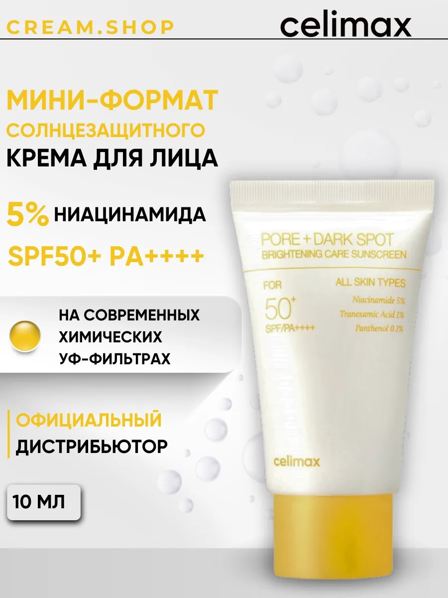 Пробник крема Pore + Dark Spot Brightening Care Sunscreen от Celimax - это отличный шанс познакомиться с продуктом или взять миниатюрный формат в отпуск.