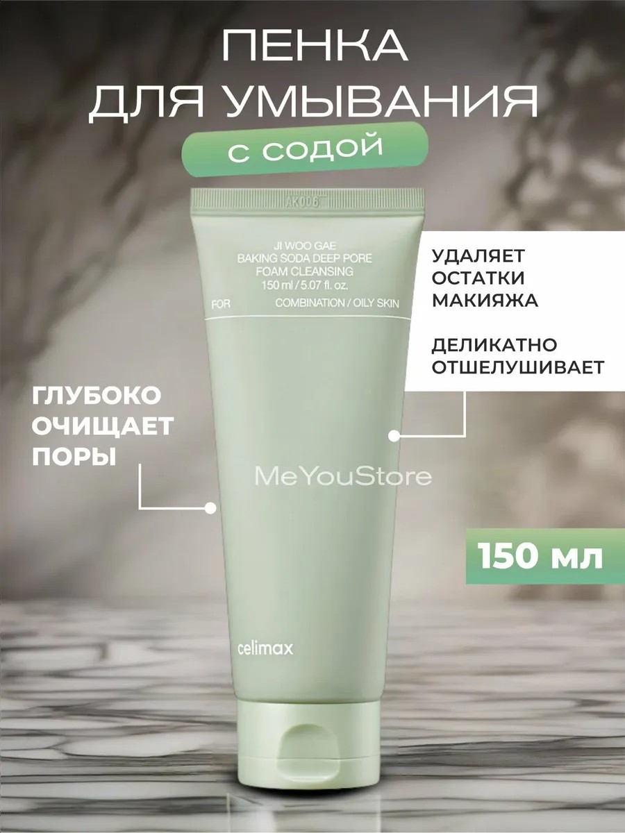Пенка для глубокого очищения с содой Jiwoogae Baking Soda Deep Pore Foam Cleansing южнокорейской марки Celimax подходит всем, в том числе чувствительной и проблемной коже. Нежная кремовая консистенция легко превращается в обильную мягкую пенку, которая мягко и глубоко очищает кожу от макияжа, ороговевших клеток, пыли, жирности и других загрязнений, быстро смывается полностью, не оставляет ощущения сухости и стянутости.