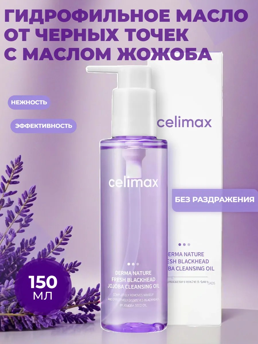 CELIMAX Derma Nature Fresh Blackhead Jojoba Cleansing Oil — гидрофильное масло для глубокого очищения кожи, борьбы с черными точками и удаления стойкого макияжа, обогащенное маслом жожоба (1500 ppm), экстрактами зеленого чая, розмарина и гиалуроновой кислотой.
