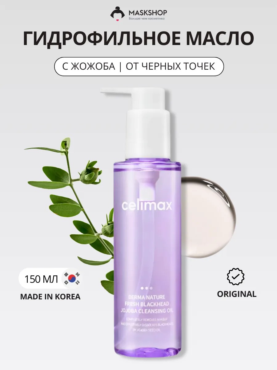 Гидрофильное масло Celimax Derma Nature Fresh Blackhead Jojoba Cleansing Oil бережно очищает поры, устраняет жирный блеск и борется с чёрными точками, удаляет даже стойкий макияж.
