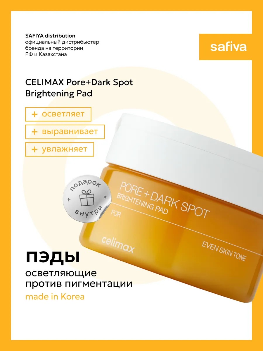 CELIMAX Pore+Dark Spot Brightening Pad — это удобный пилинг-тоник в формате мягких пэдов для лица. Благодаря мощному комплексу осветляющих и отшелушивающих компонентов пэды эффективно борются с тусклым тоном, пигментацией, неровной текстурой и расширенными порами. Подходят для ежедневного применения и не вызывают раздражения.