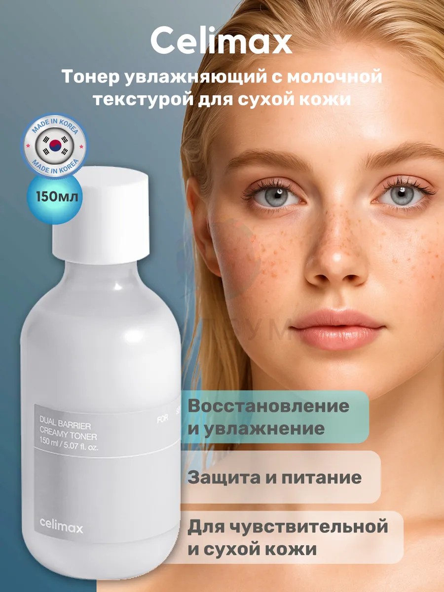 Тонер для лица Celimax с увлажняющей молочной текстурой – это идеальное решение для ухода за сухой и чувствительной кожей. Этот тонер не только эффективно увлажняет и тонизирует кожу, но и способствует ее восстановлению, делая ее более мягкой и эластичной. Уникальная формула, обогащенная гиалуроновой кислотой, запатентованным комплексом пептида AQUATIDE, аллантоином и комплексом растительных керамидов, обеспечивает глубокое увлажнение и защиту кожи от негативного воздействия окружающей среды. Celimax тонер подходит для всех типов кожи, в том числе для чувствительной и атипичной. Его легкая молочная текстура быстро впитывается, не оставляя липкости, и дарит коже ощущение комфорта и свежести. Регулярное использование тонера Celimax поможет вам сохранить красоту и молодость вашей кожи.