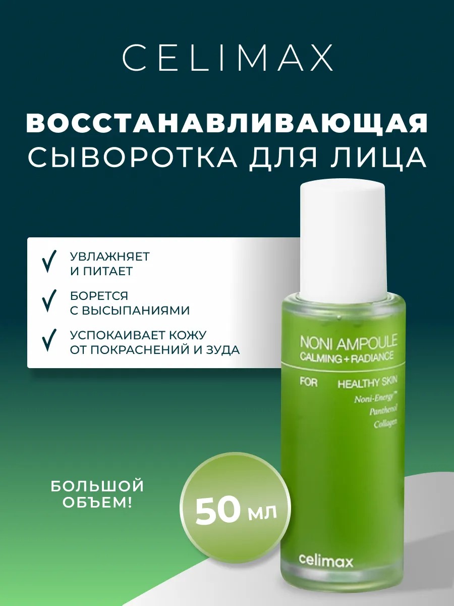 Восстанавливающая сыворотка для лица Celimax The Real Noni Energy Ampoule - восстанавливающая сыворотка селимакс для кожи лица с экстрактом нони CELIMAX The Real Noni Energy Ampoule - в течение первых дней использования заметно восстанавливает кожу, борется с воспалениями и шелушениями. Увлажняет, делает кожу мягкой и гладкой, препятствует появлению чувства сухости, придает коже здоровое сияние изнутри. Восстанавливает естественный защитный барьер кожи, замедляет процессы старения. Состав обогащен 71.77% экстрактом Нони и включает 0.04% аденозина одновременно питает и увлажняет кожу, способствует разглаживанию мелких морщинок и выравниванию тона лица. Успокаивает раздраженную кожу, защищает от разрушительного действия свободных радикалов, благодаря входящих в состав натуральных витаминов и минералов. Для эффективного решения проблем кожи - экстракт плодов фрукта нони был выбран основным компонентом в составе сыворотки. Ведь он известен своими противовоспалительными, антиоксидантными и увлажняющими свойствами.