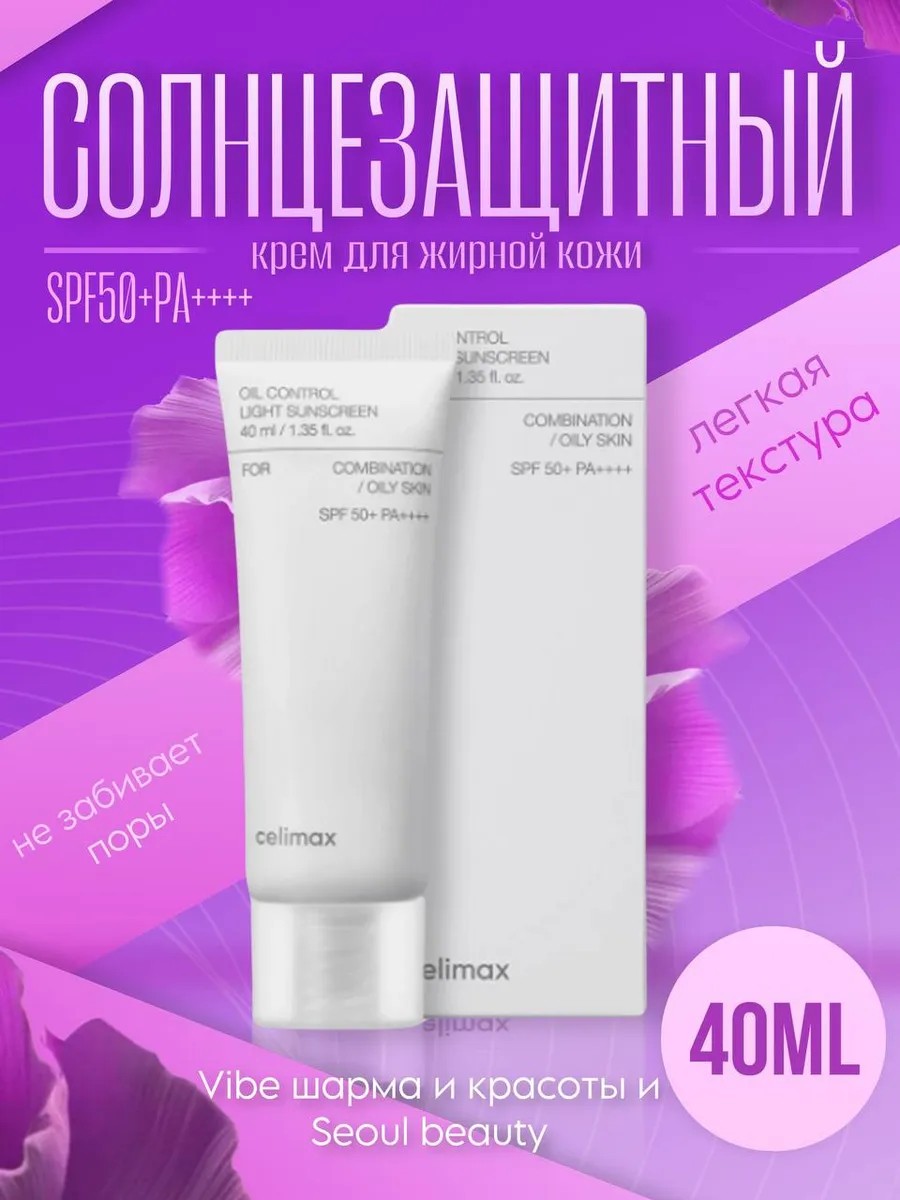 Легкий солнцезащитный крем для жирной кожи Celimax Oil Control Light Sunscreen. Коже, склонной к появлению жирного блеска в течение дня, очень часто сложно подобрать санскрин, который не будет жирнить или сушить, при этом лежать комфортно в течение всего дня. Солнцезащитный крем от Celimaх не только активно и надежно защищает кожу от вредного воздействия ультрафиолетового излучения, но и сохраняет комфорт кожи, естественную матовость без иссушения и стянутости кожи.