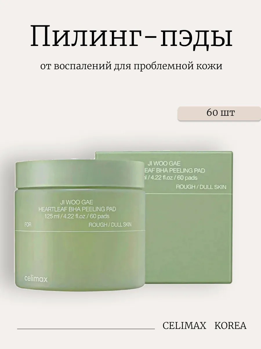 | Комплектация | Пилинг-пэды от воспалений для проблемной кожи 60 шт Ji Woo Gae Heartleaf BHA |