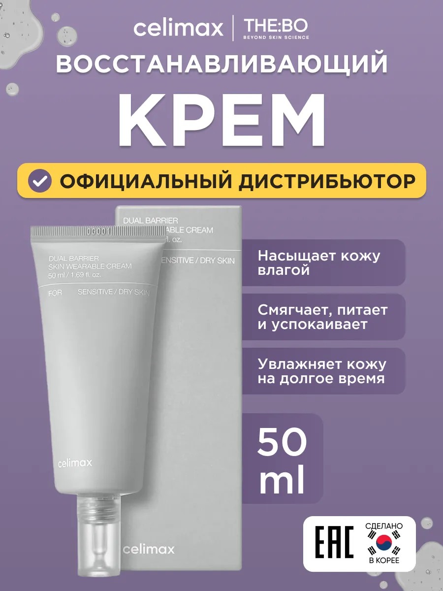 Крем для восстановления защитного барьера Dual Barrier Skin Wearable Cream с церамидами от корейского бренда Celimax — это профессиональное средство для ухода за кожей, обеспечивающее интенсивное увлажнение, питание и омоложение.