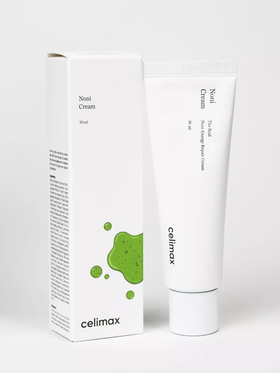 Крем Celimax с нони The Real Noni Energy Repair Cream восстанавливает тонкую кожу, успокаивает и смягчает, ускоряет восстановление, устраняет шелушение и сухость, снимает воспаление, повышает упругость и эластичность.